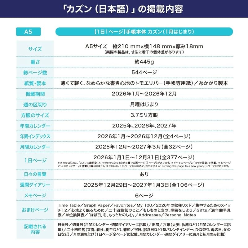 Hobonichi Techo 2026 HON Kubota Hiroko/Waiting for Harmony [A5/1 day per page/1 month/Monday start]