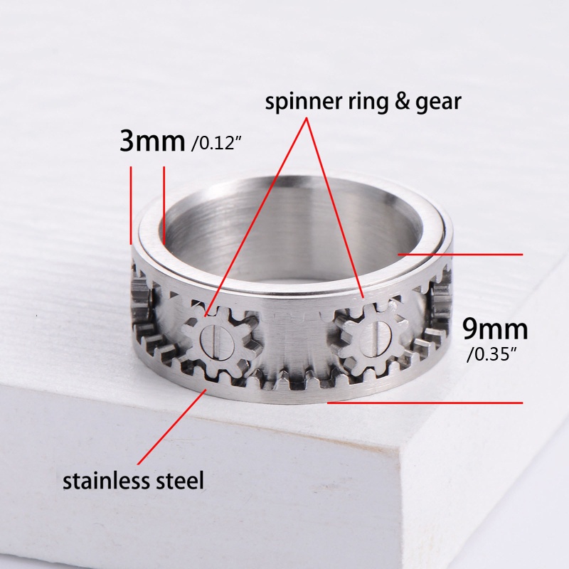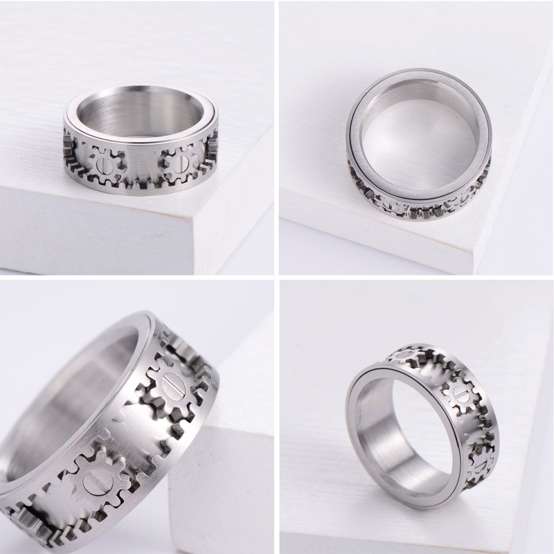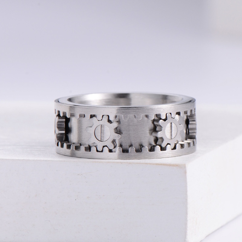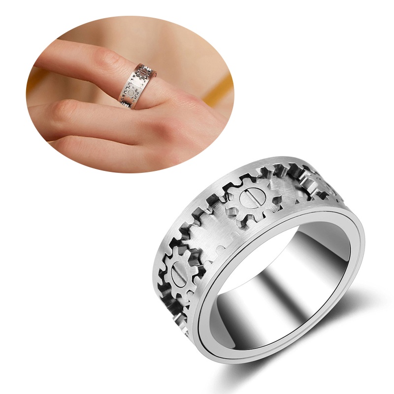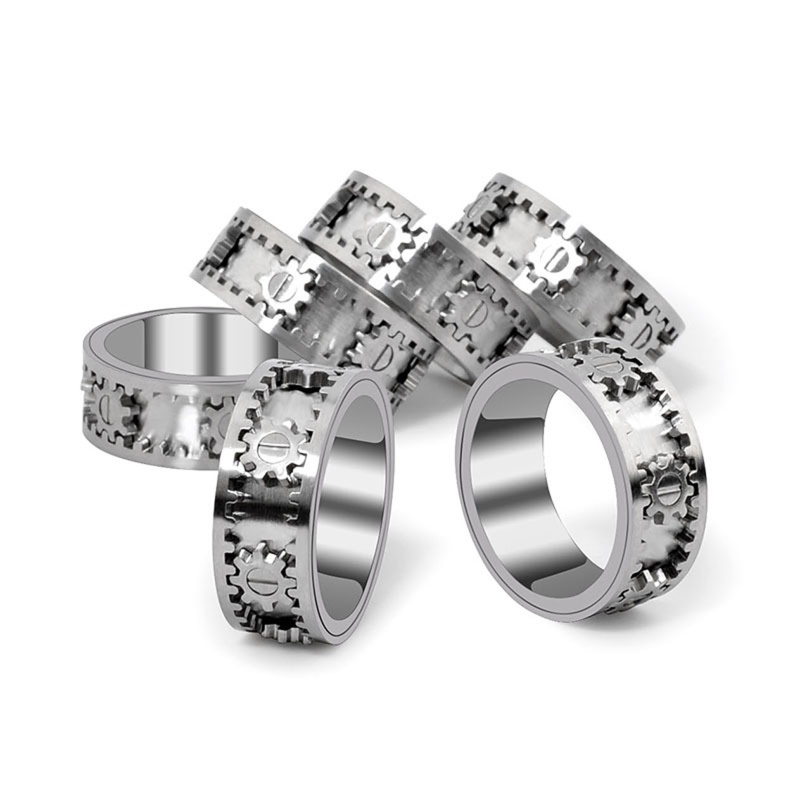 san* Metal Titanium Steel Rotating Gear Ring, Sizes 6 to 11 for Men Women Ring