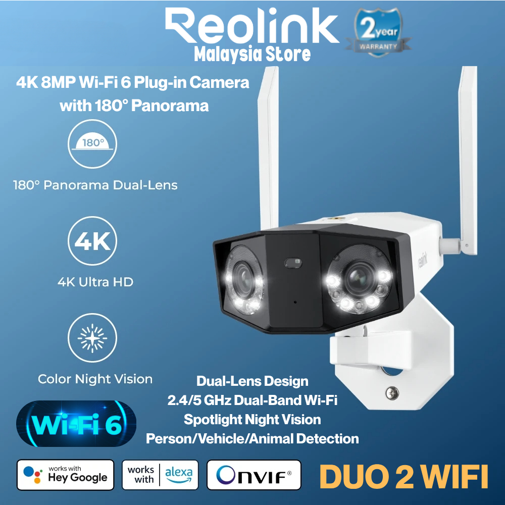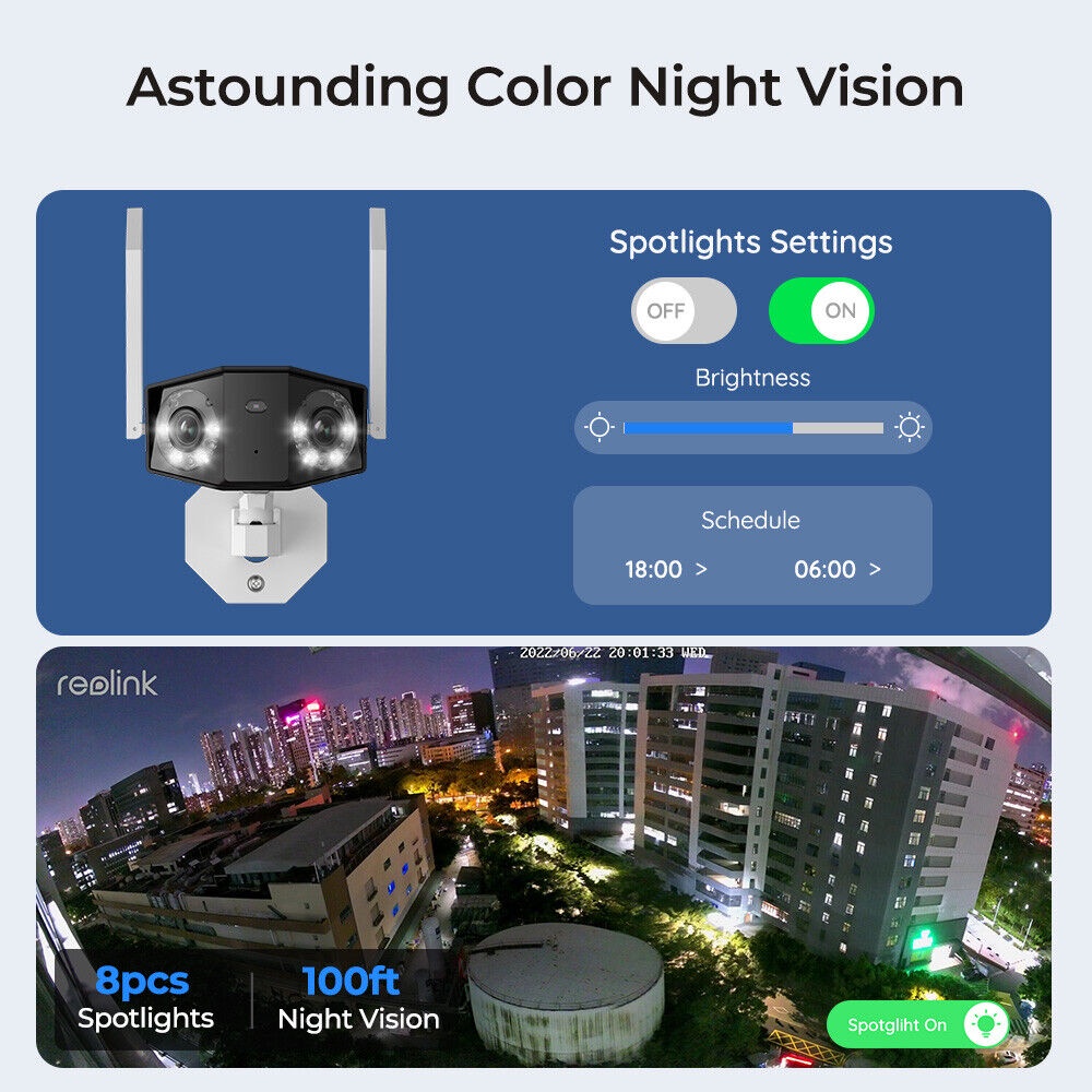 Reolink Duo 2 Wi-Fi 4K 8MP Wifi 6 Camera Dual Lenses 180° Wide Angle Color Night Vision Person/Vehicle/Pet Detection
