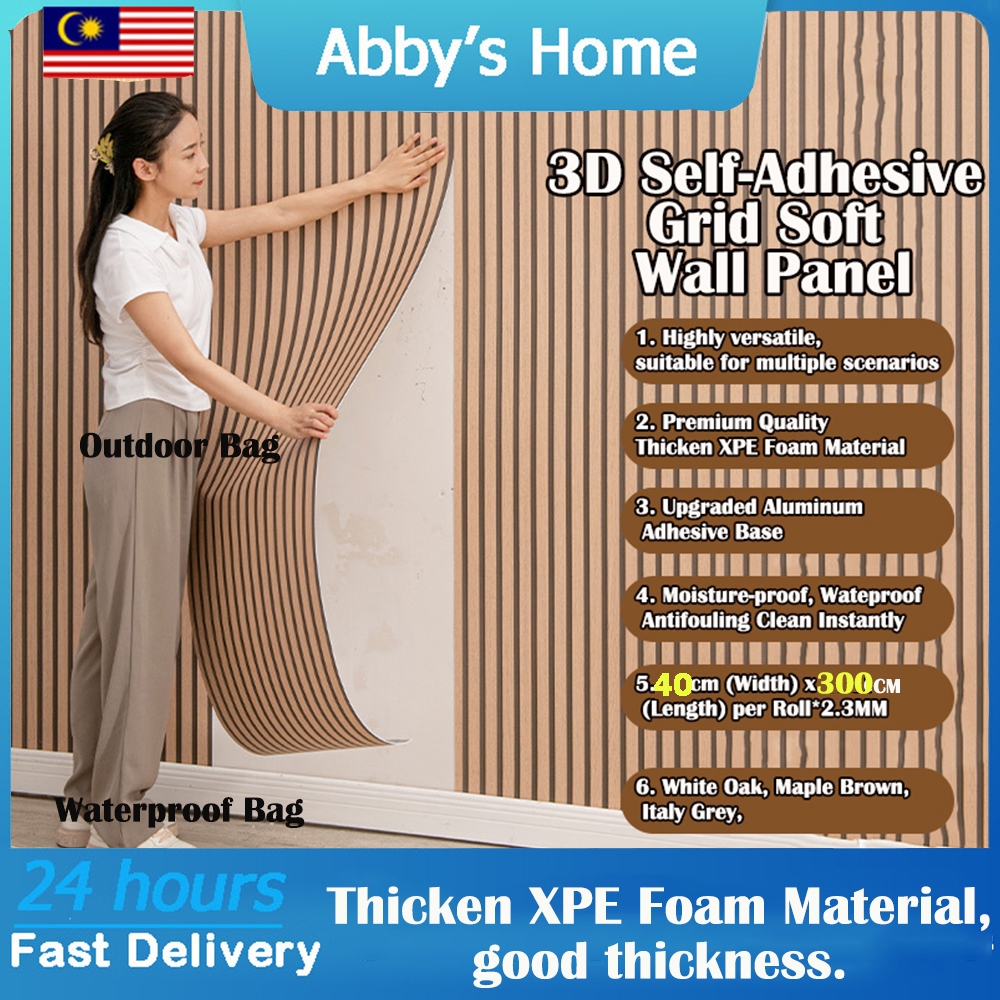 40x300CM Kertas Dinding Kayu 3D Wood Thick Foam Wallpaper Fluted Waterproof Living Room Self Adhesive Wall Stickers 牆壁貼紙