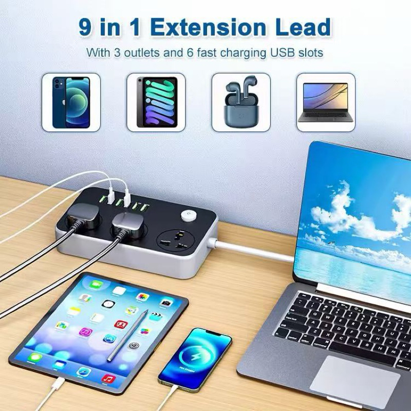 LDNIO SC3604/SC3412/SK3662 / SC5309 / SC10610/ SC2413 Power Strip 3 Universal Socket with 6 USB Output 3.4A & 2m UK Plug