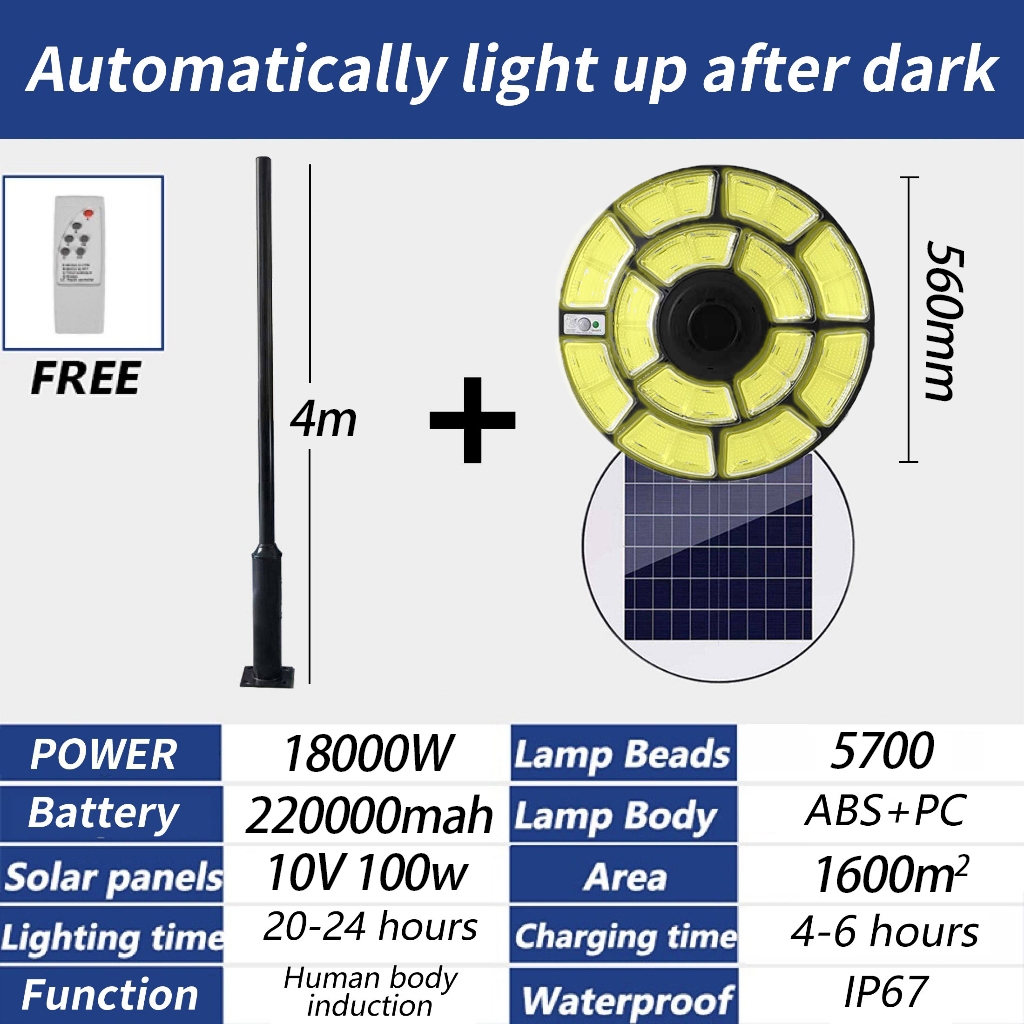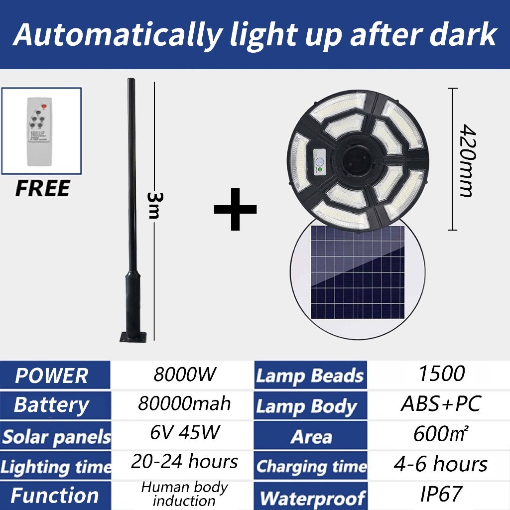 【10 Years Warranty】NEW UFO Solar Light Lampu Solar jalan Solar light outdoor lighting 8000W solar Spotlight LED Light Waterproof IP67 Ultra-bright high-power solar lampu 太阳能灯