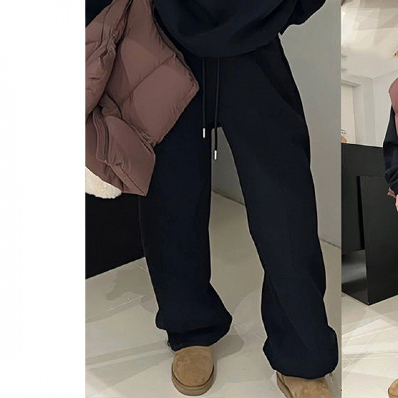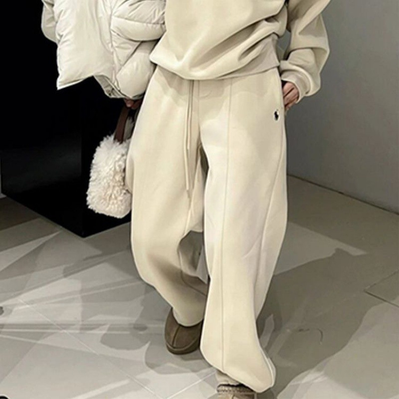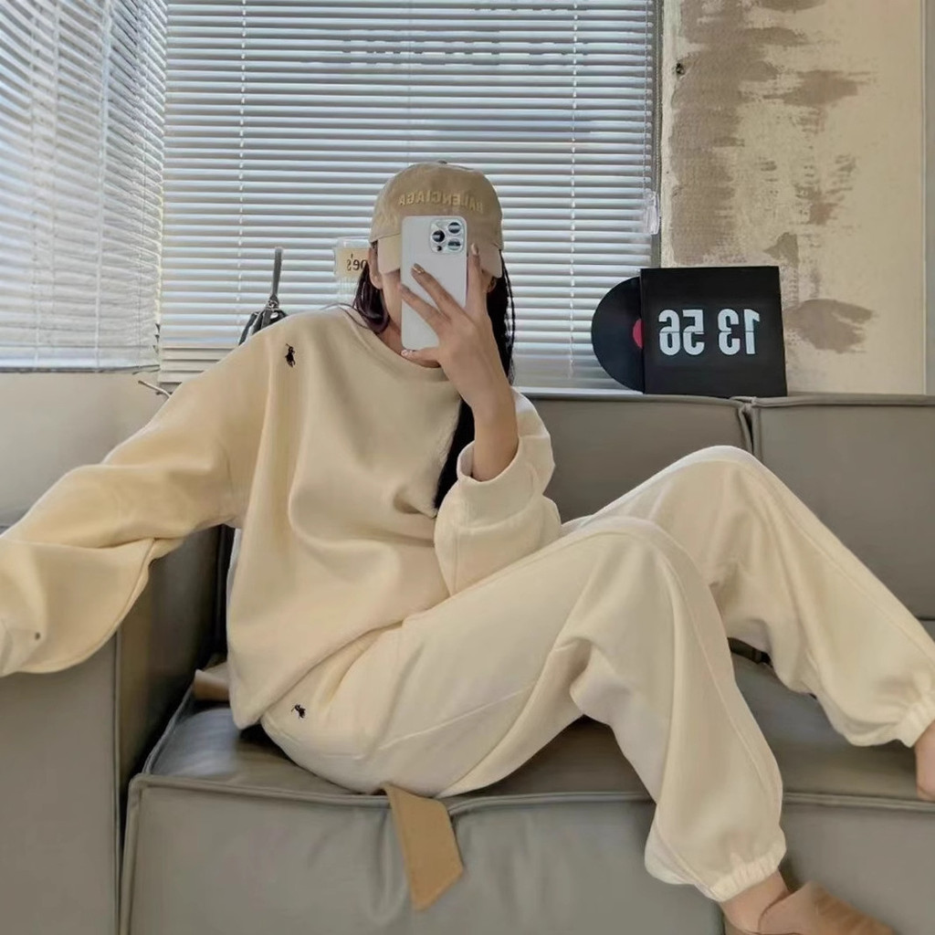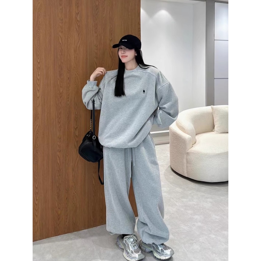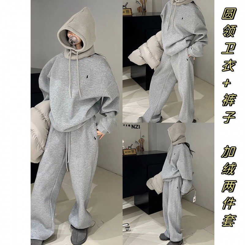 Korean plus plus casual sportswear set for women in autumn and winter 2025, loose embroidered fleece hoodie+pants two-piece set