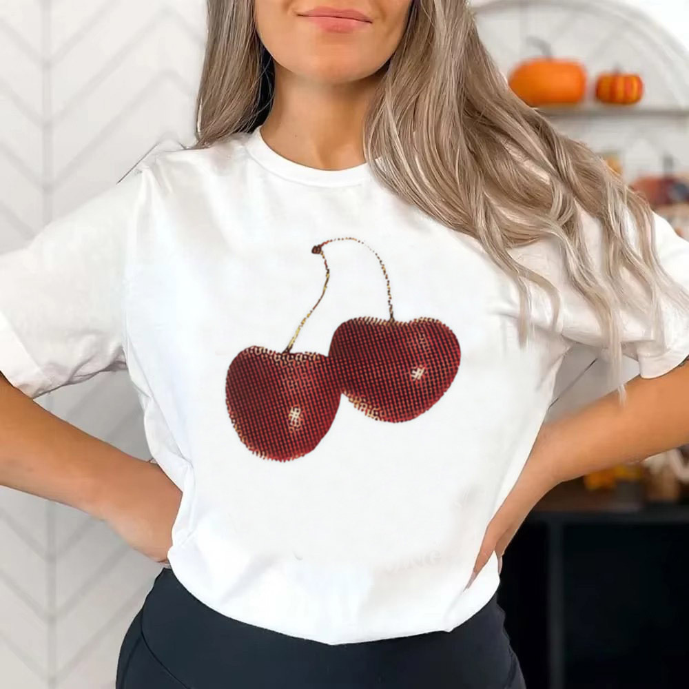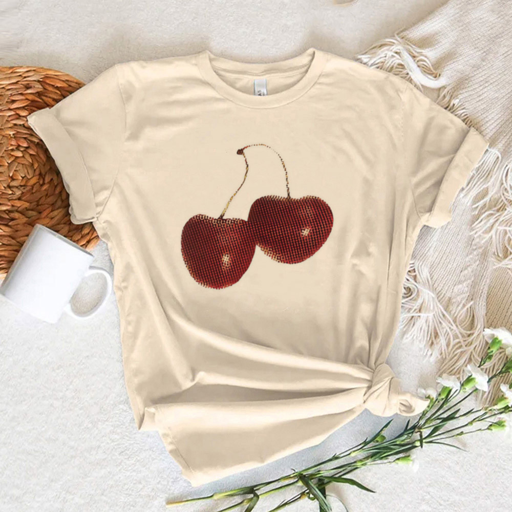 Cherry t-shirt female Y2k korean clothes hip hop Breathable top tees Graphic kawaii Vintage women hip hop anime