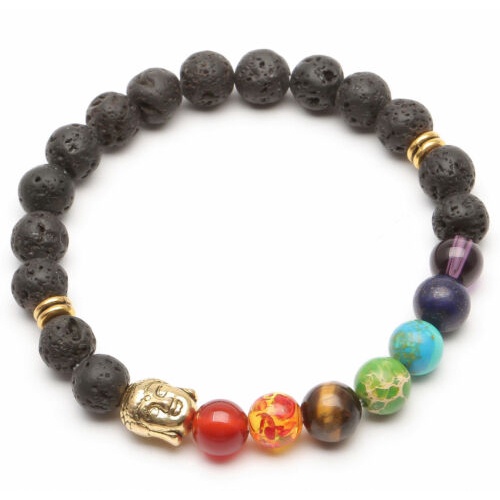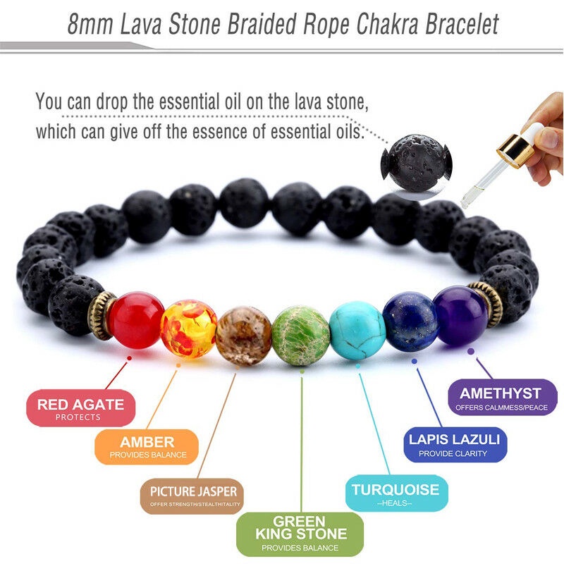 OSR 7 Chakra Healing Beaded Bracelet Natural Lava Stone Diffuser Bracelet Jewelry 8mm