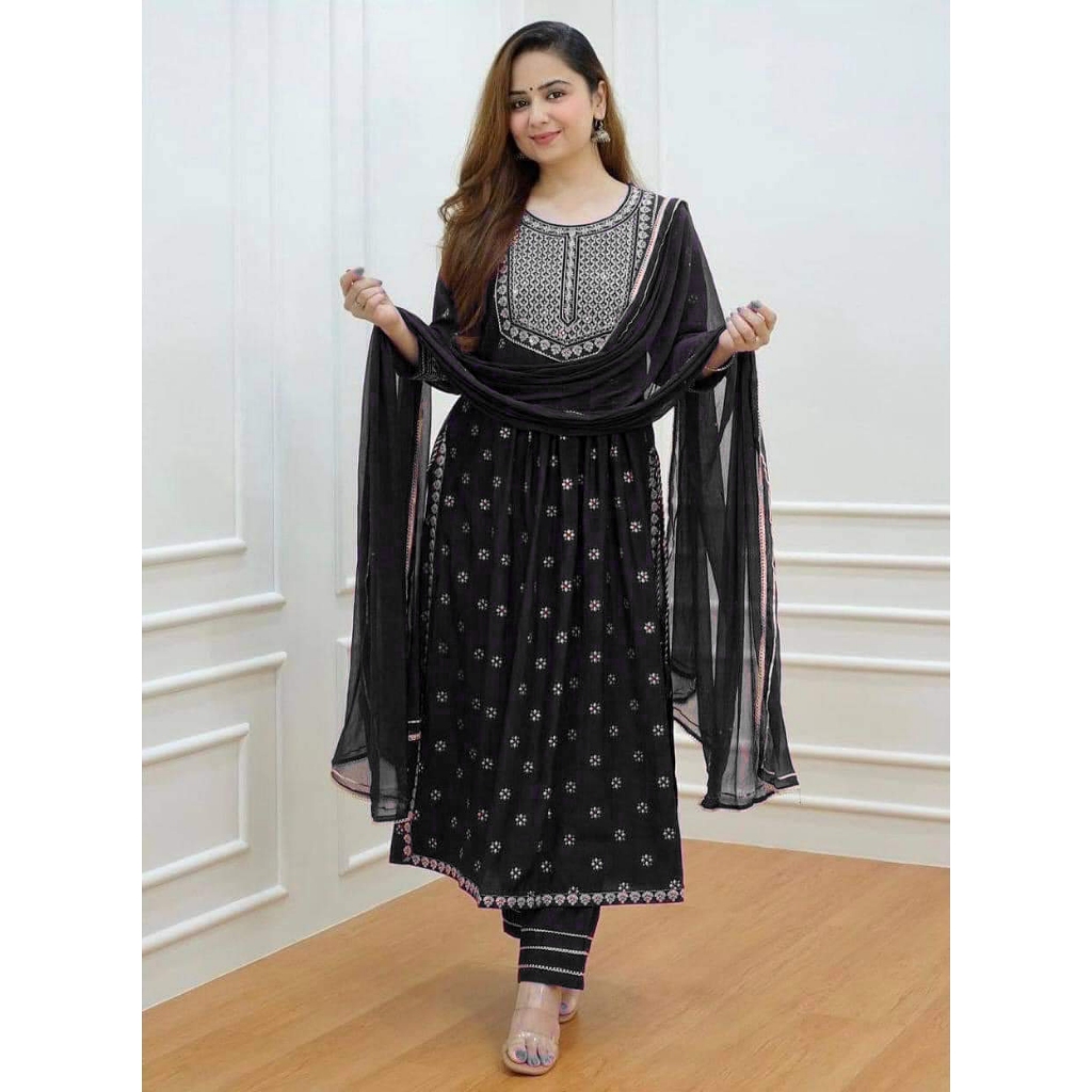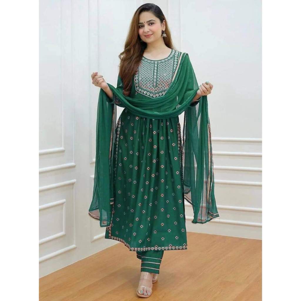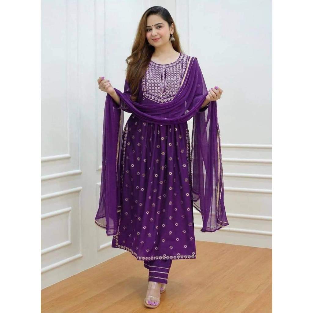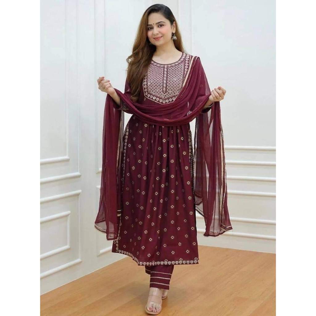 Pakistani Embroidery Work Naira Cut Top, Pants & Dupatta By FASHION DIVAA