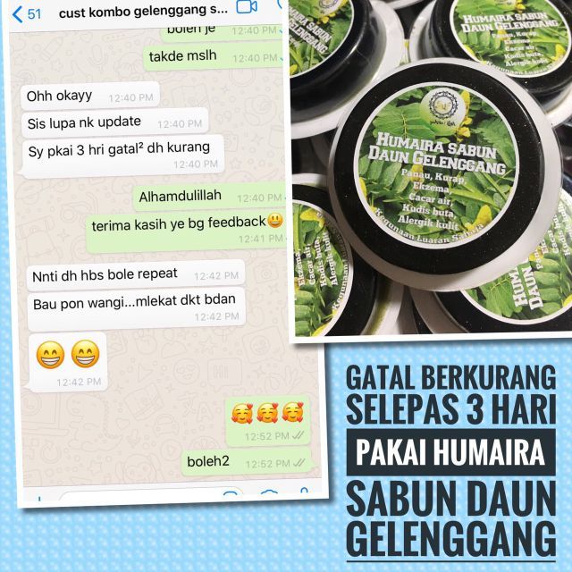 HUMAIRA SABUN DAUN GELENGGANG ORIGINAL UNTUK EKZEMA, KUDIS, GATAL-GATAL KULIT,PANAU, KURAP, RUAM