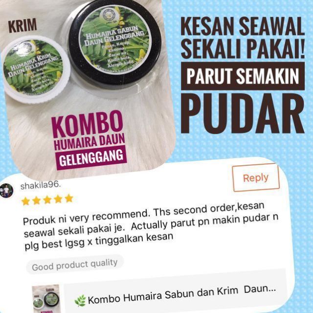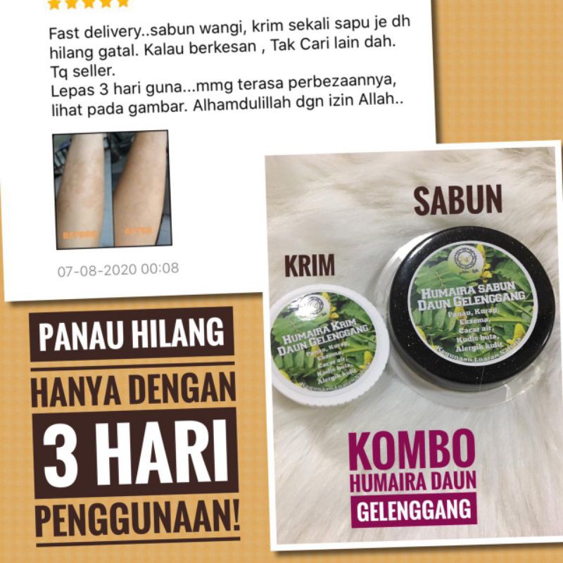 Kombo krim + sabun daun gelenggang (untuk Kurap, Panau, Kudis, Gatal-gatal, Ekzema)