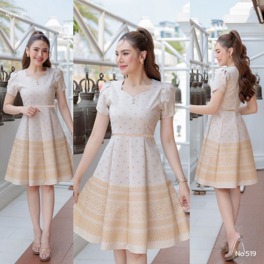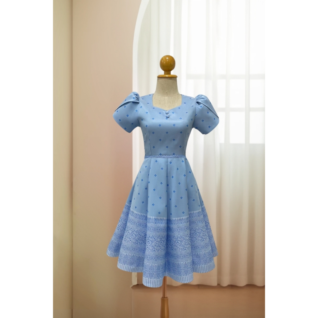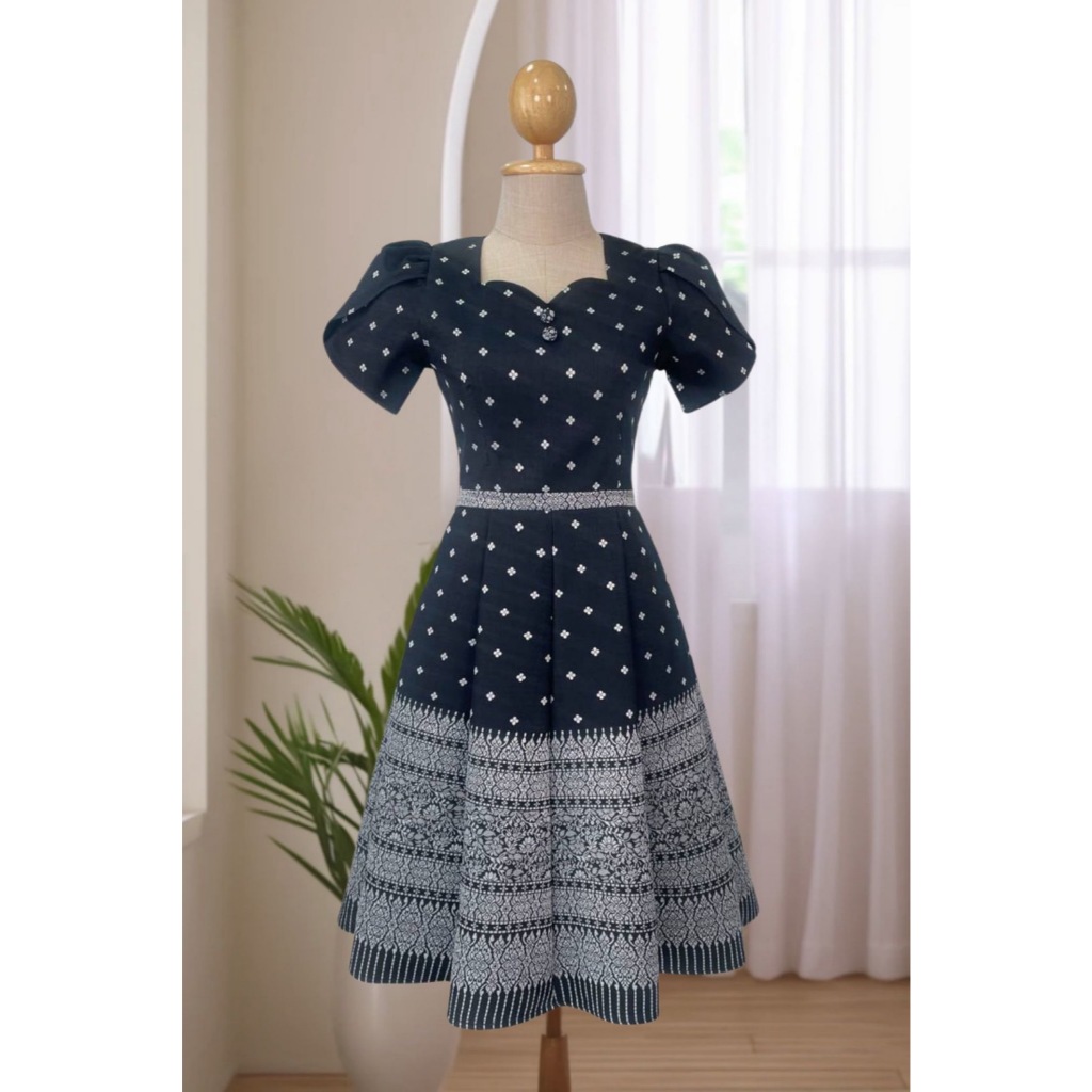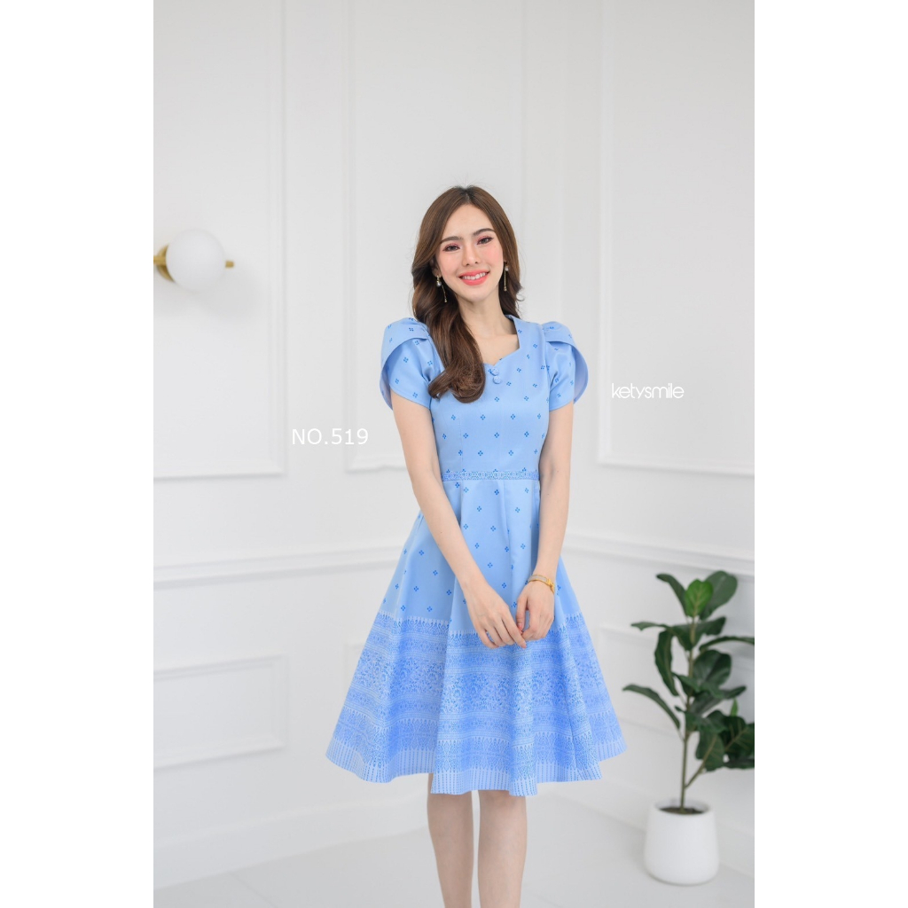 Kety Smile Silk Woven Dress 8-Piece Flared Skirt Heart-Shaped Stamped Buttons Decorated With Lotus Petal Sleeves (S-5XL) N519