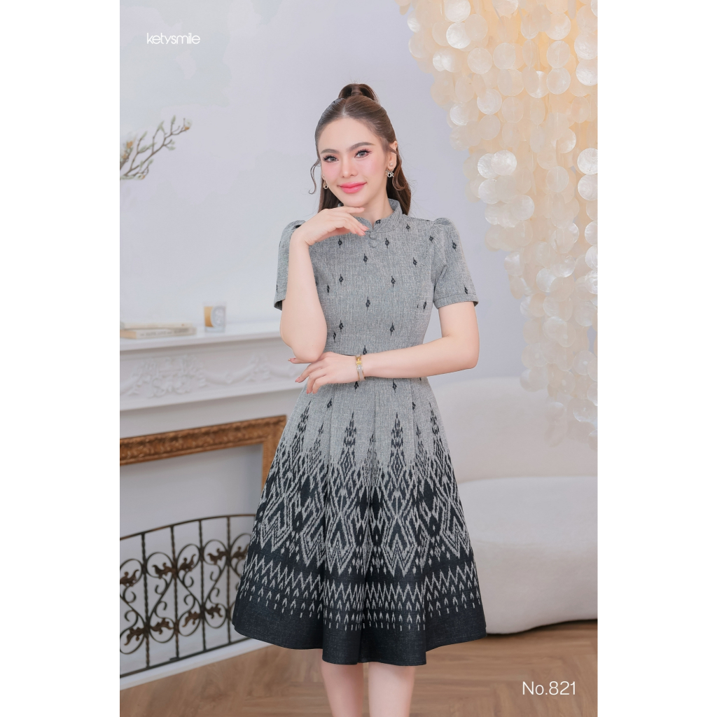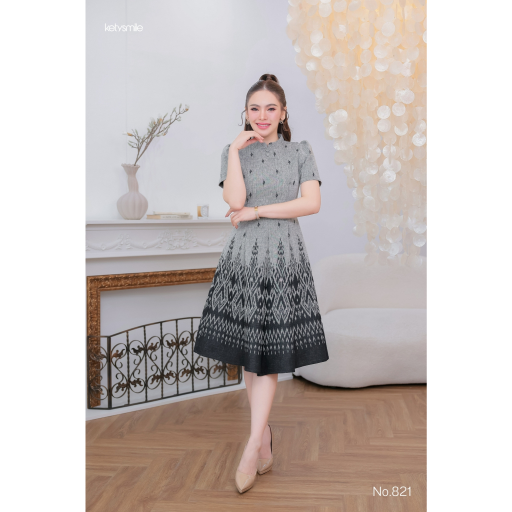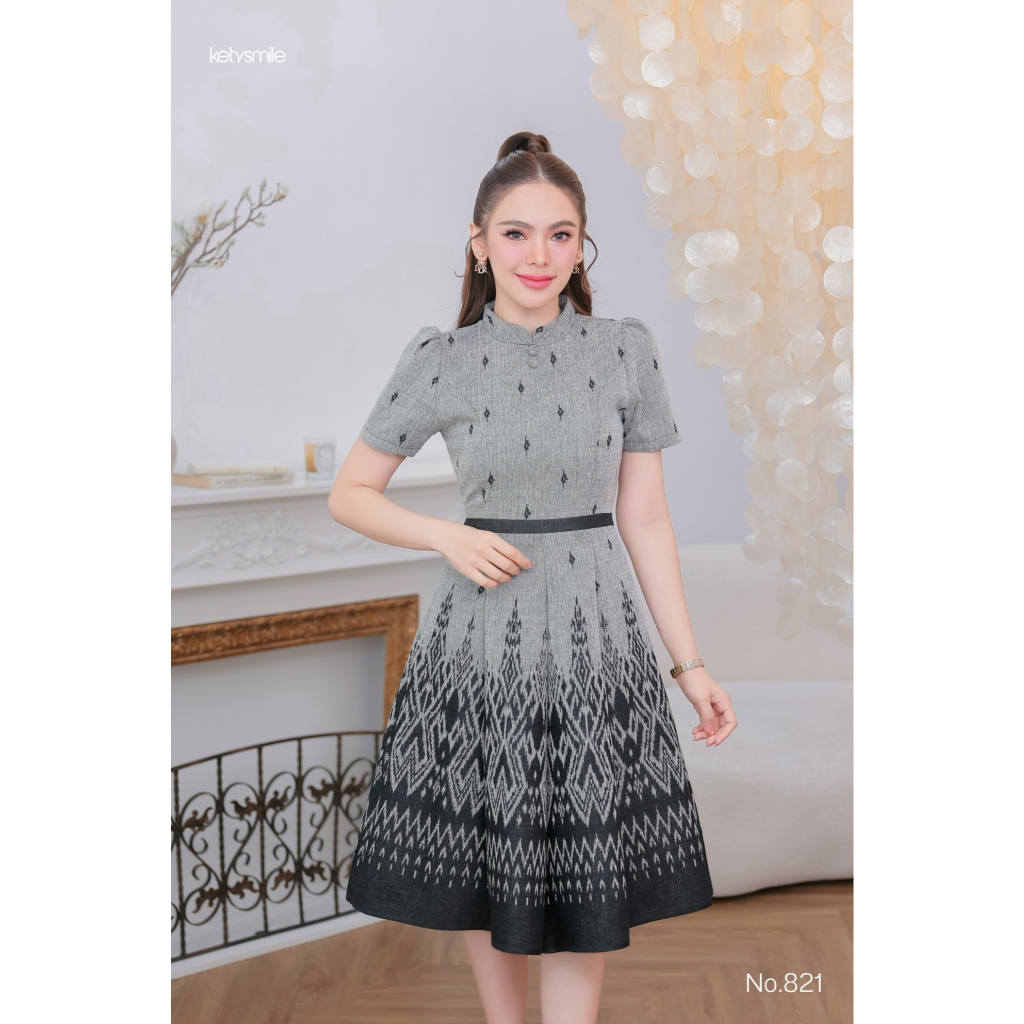 Kety Smile Woven Dress With A Boat Neck And Waist Trim 8-Piece Flared Skirt Glued Throughout The Set Hidden Back Zipper (S-5XL) N821