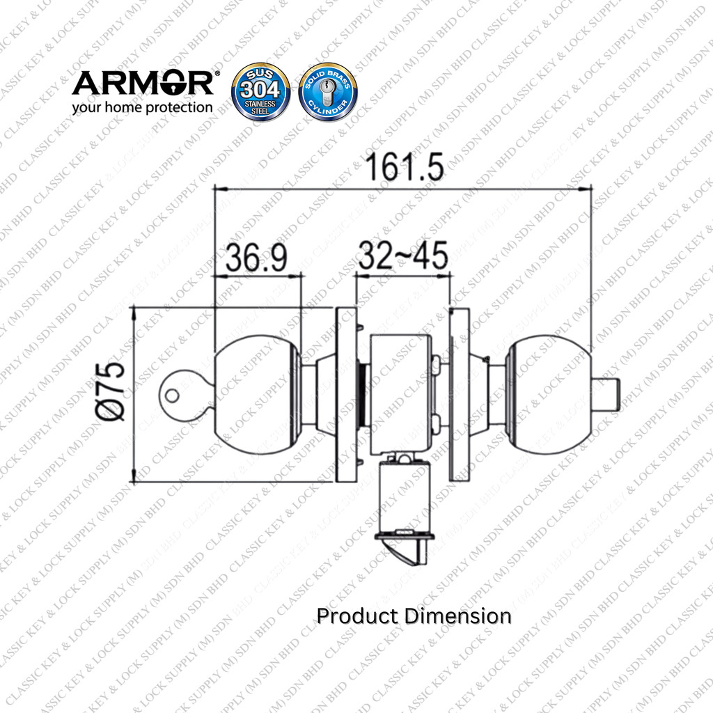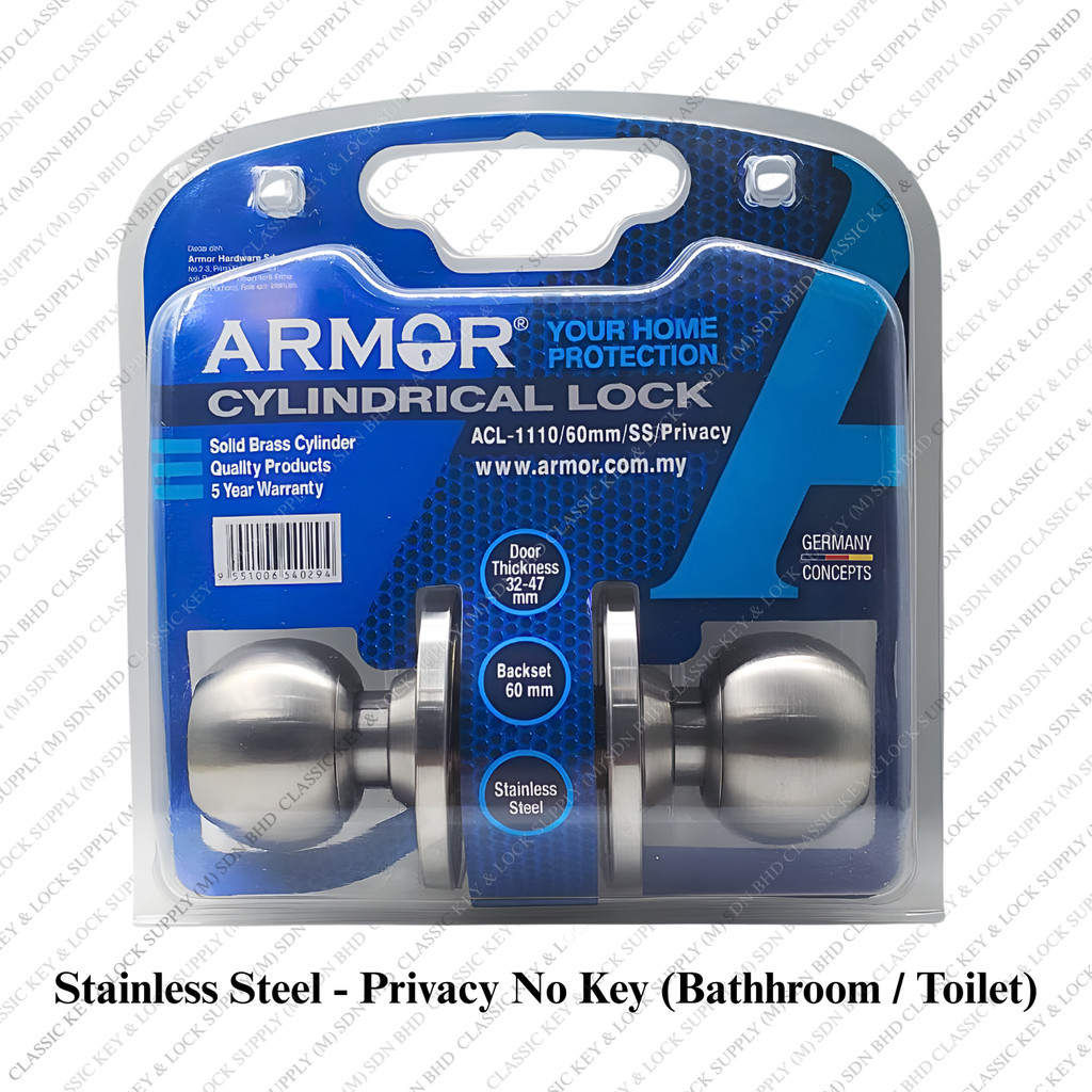 Armor Door Knob Tombol Pintu Bilik ACL-1100 Stainless Steel