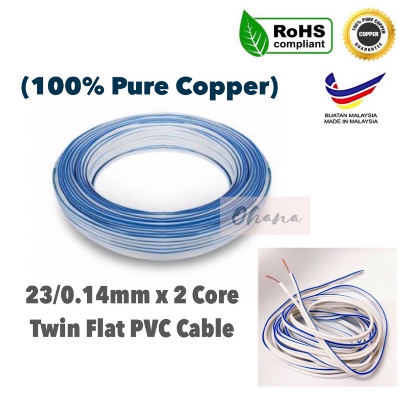 5m/8m/10m 100% PURE COPPER CABLE 23/0.14 X 2 CORE BLUE WHITE PVC INSULATED TWIN FLAT CABLE/ KABEL WAYER 2 TERAS/WIRE 2C