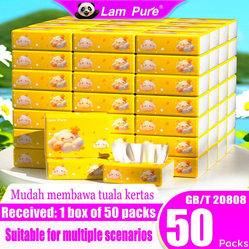 [50 PACKS] LamPure Facial Tissue Cute Tissue Paper Portable Tissue Soft Paper 1 Carton = 50 Packs