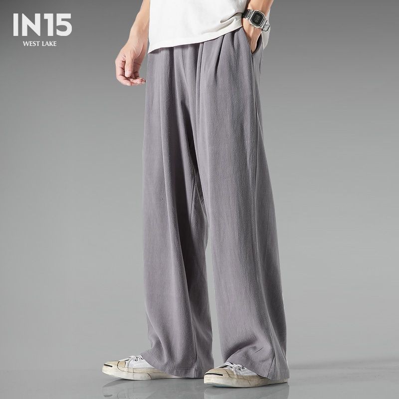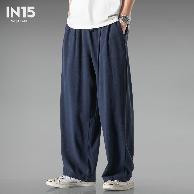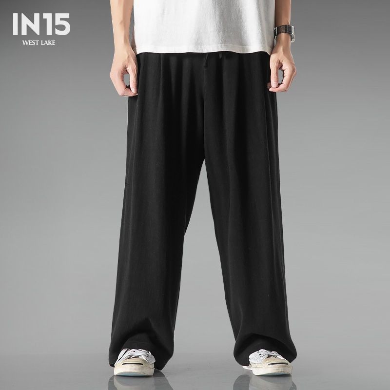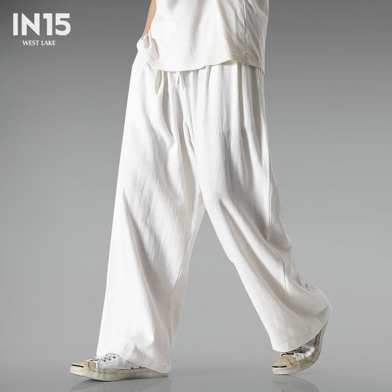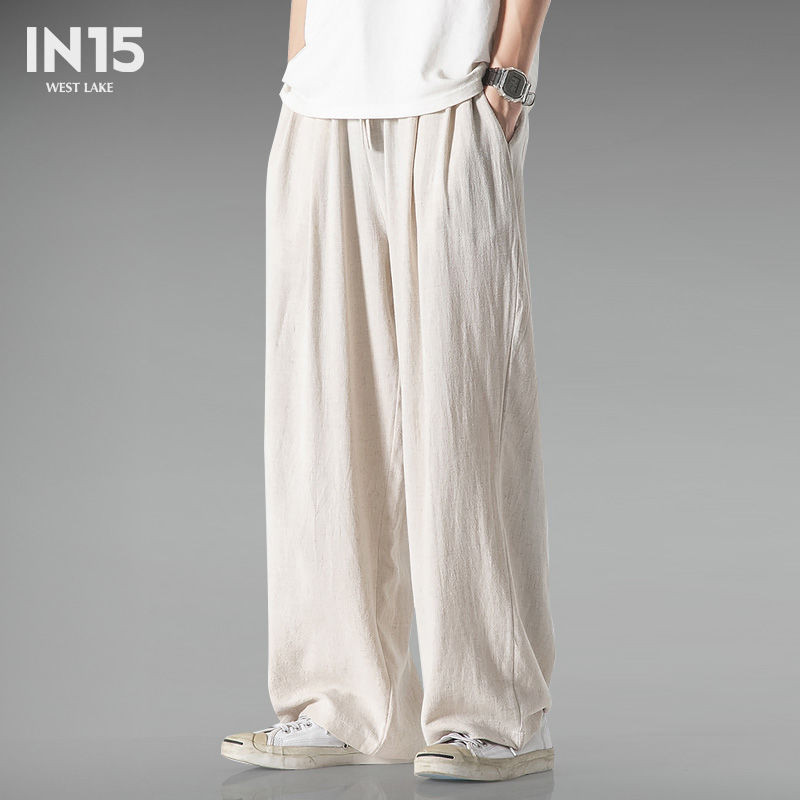 大码中国风棉麻亚麻阔腿裤男百搭长裤宽松舒适休闲裤棉麻裤子Chinese style pants4.19