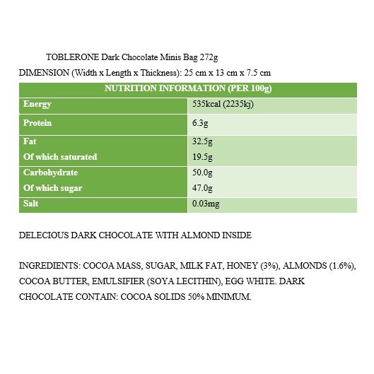 Chocolate TOBLERONE Dark Chocolate Minis Bag 272g Coklat