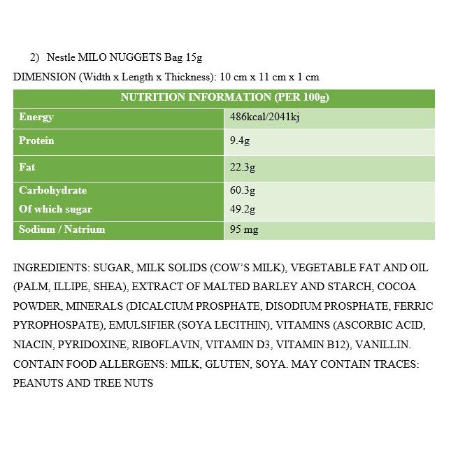 Chocolate Nestle MILO NUGGETS Bag 15g Coklat