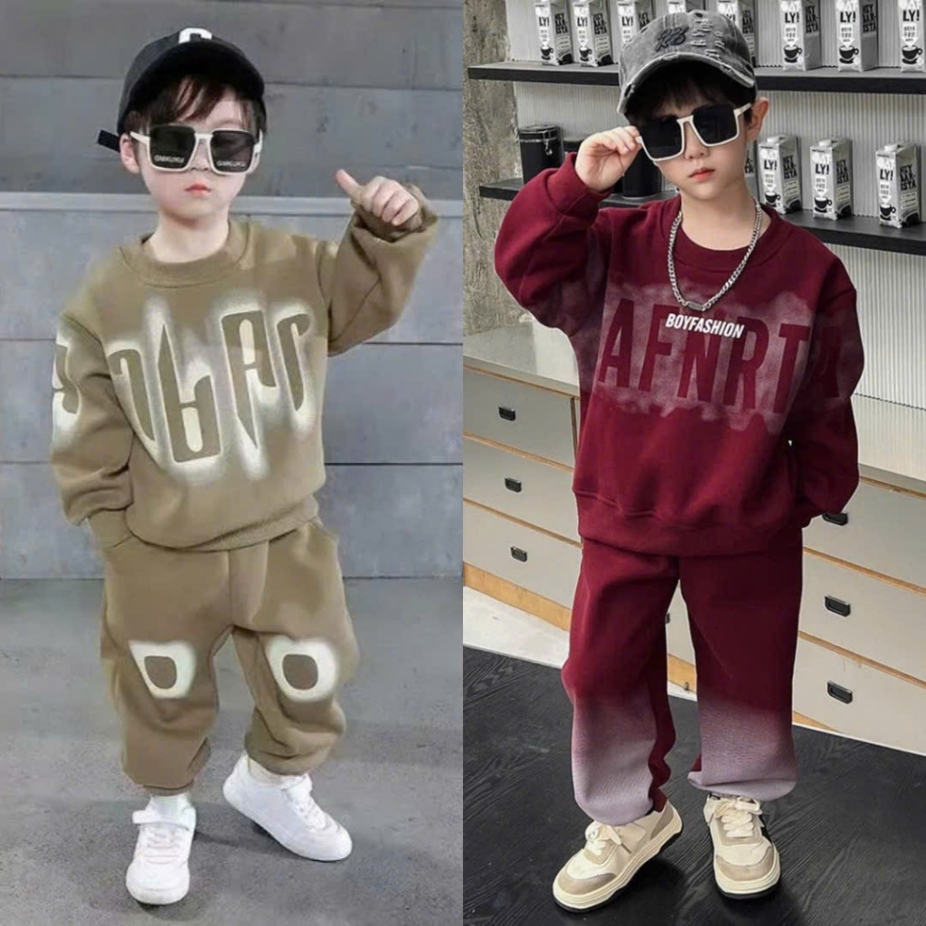 Boys' Outfits. Autumn-winter felt Set for boys from 10-30kg with printed patterns and trendy styles baju budak lelaki set baju ootd budak lelaki