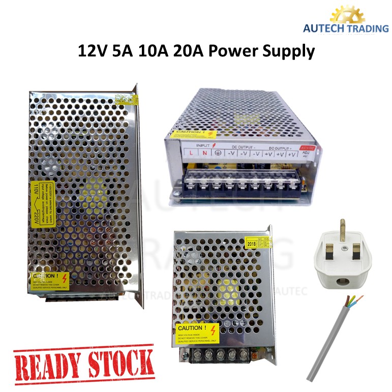 12V 5A 10A 20A Power Supply CCTV PSU Surveillance RG59 Cable