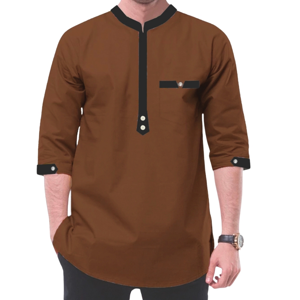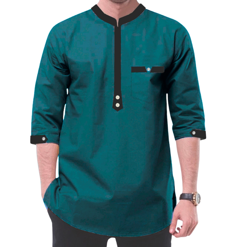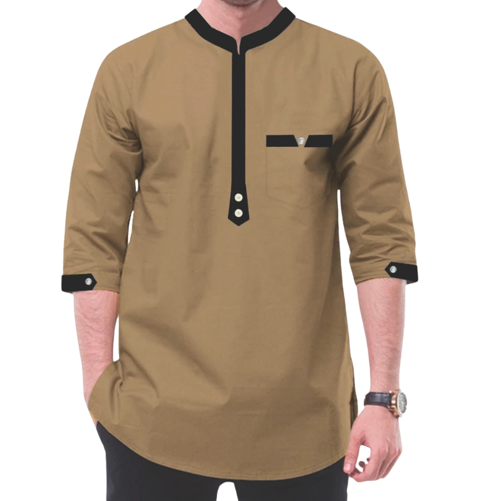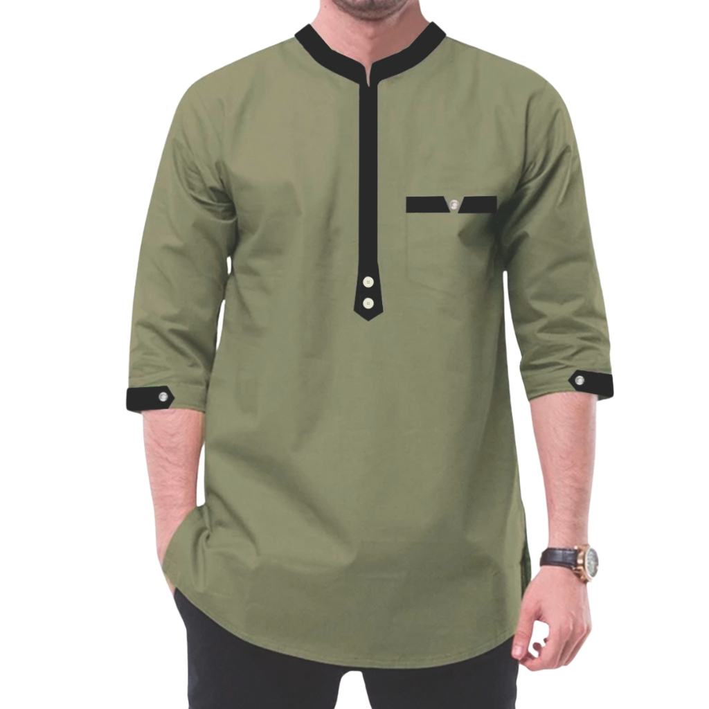 Exclusive Kurta Lelaki Como Crepe 3/4 Sleeves with Front Zip & Button Trending Terkini Dewasa