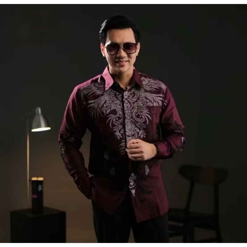 KEMEJA Jirolu batik men's long-sleeved batik shirt in bright colors, sandalwood motif kemeja lelaki