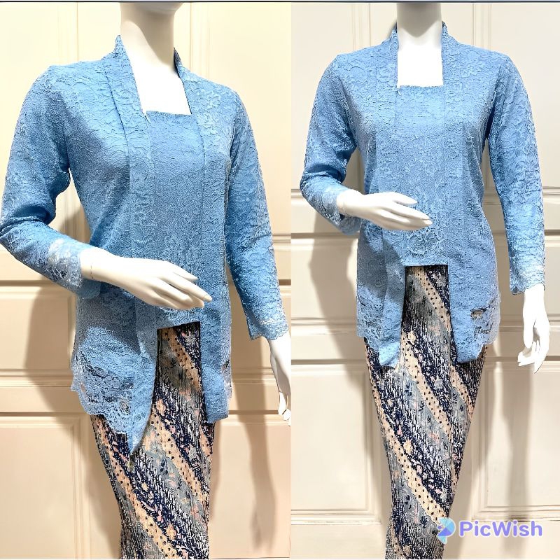 Brocade Kebaya Set Modern Kutubaru Kebaya/ with Long Sleeves and Batik Pleated Skirt, Elegant Wedding Dress Kebaya Moden Kebaya Set Kebaya Set Batik