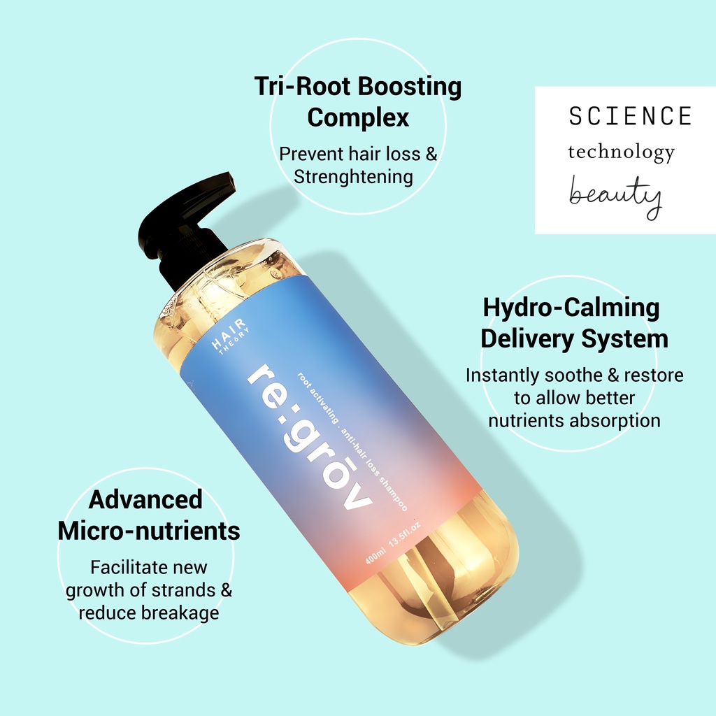 [HAIR THEORY] Anti Hair Loss Shampoo RE:GROV 400ml| Hair Growth DHT blocker Shampoo Biotin Shampoo Hair Growth Tonic set