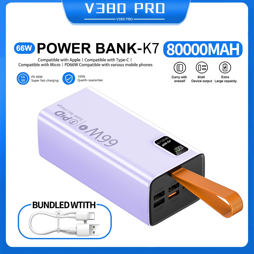 V380 PRO Power Bank K7 PD Fast Charging All USB Output Ports Digital Display For Phone (50000mAh 30000mAh 12000mAh/66W)