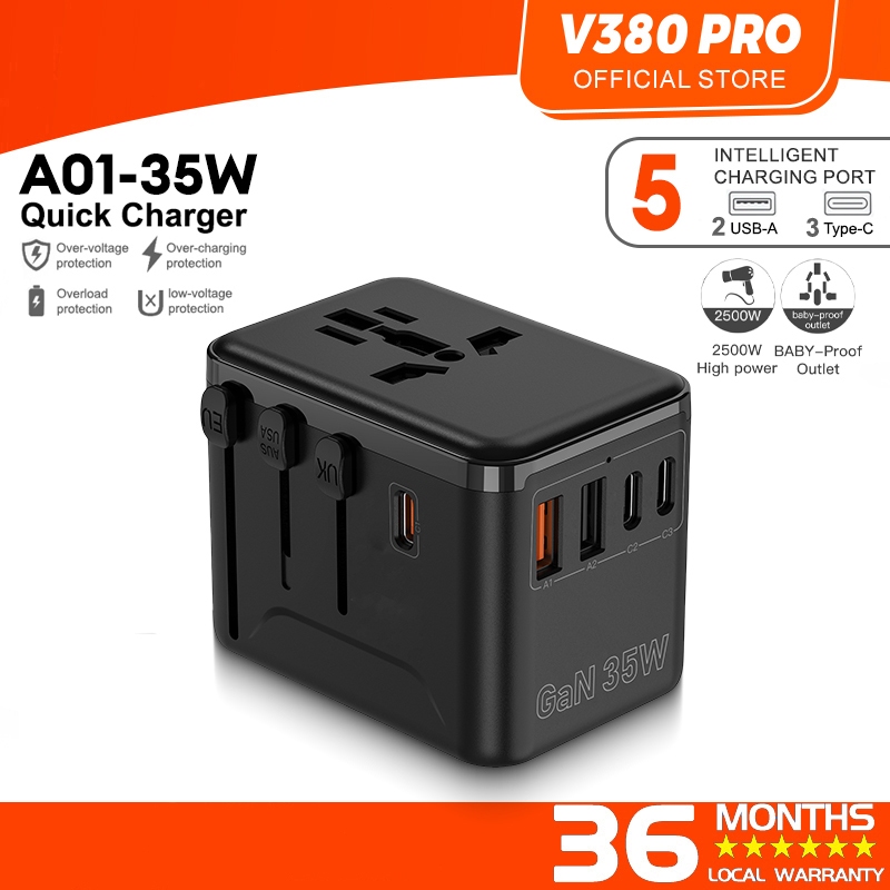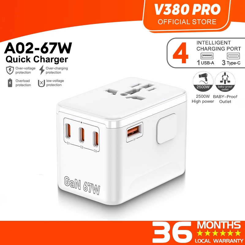 V380 Pro 25W GaN USB C Adapter Fast Charger Type C Plug iPhone 16 15 14 iPad iWatch Samsung Universal Adapter