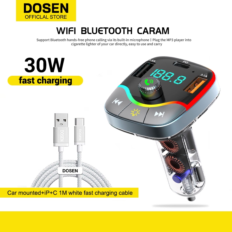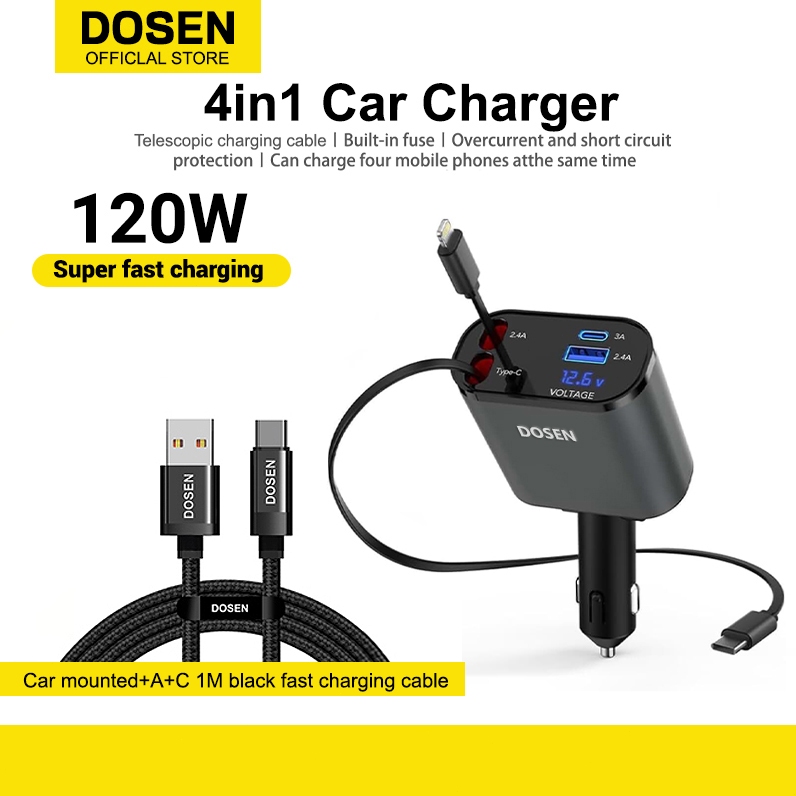 DOSEN Car Charger 4 IN 1 Type-C Charger Adapter Adjustable Angle Fast Charging for Cars (Retractable Mobile Charger)