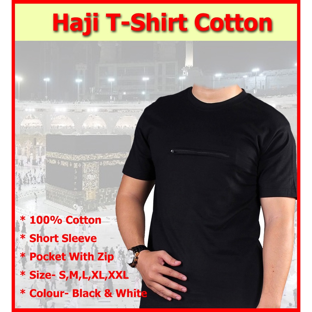Baju haji lelaki /Baju t-shirt putih, Hitam/ Kelengkapan haji umrah