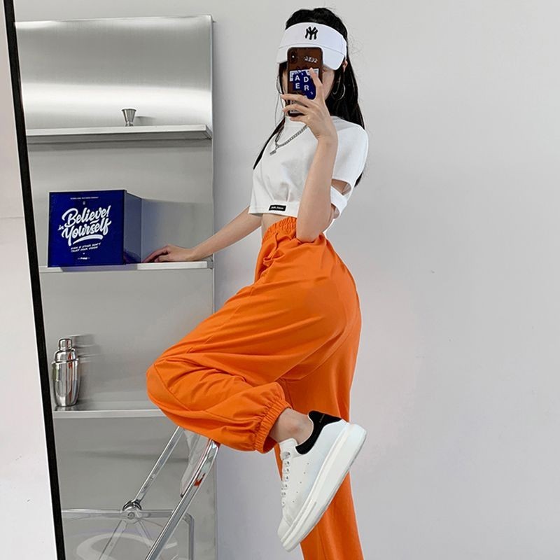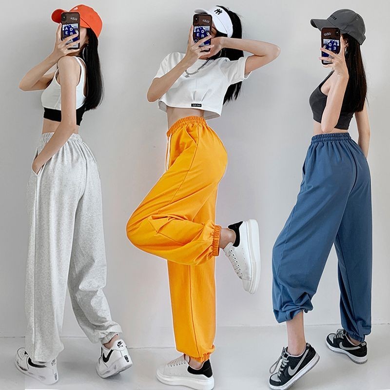 长裤 Pants hiphop潮流束脚裤女宽松百搭休闲运动裤嘻哈爵士街舞阔腿卫裤 Ready Stock 03.01