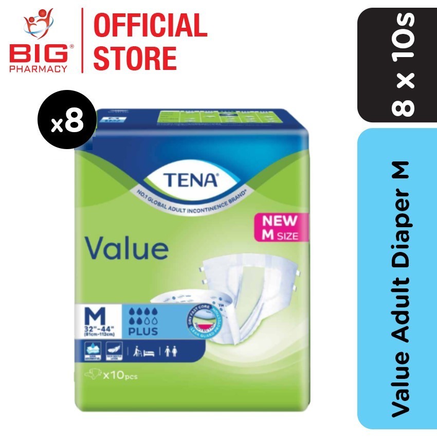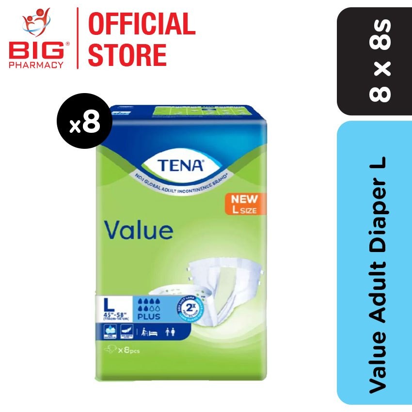 Tena Value Adult Diaper 8s x 8 (M, L or XL)