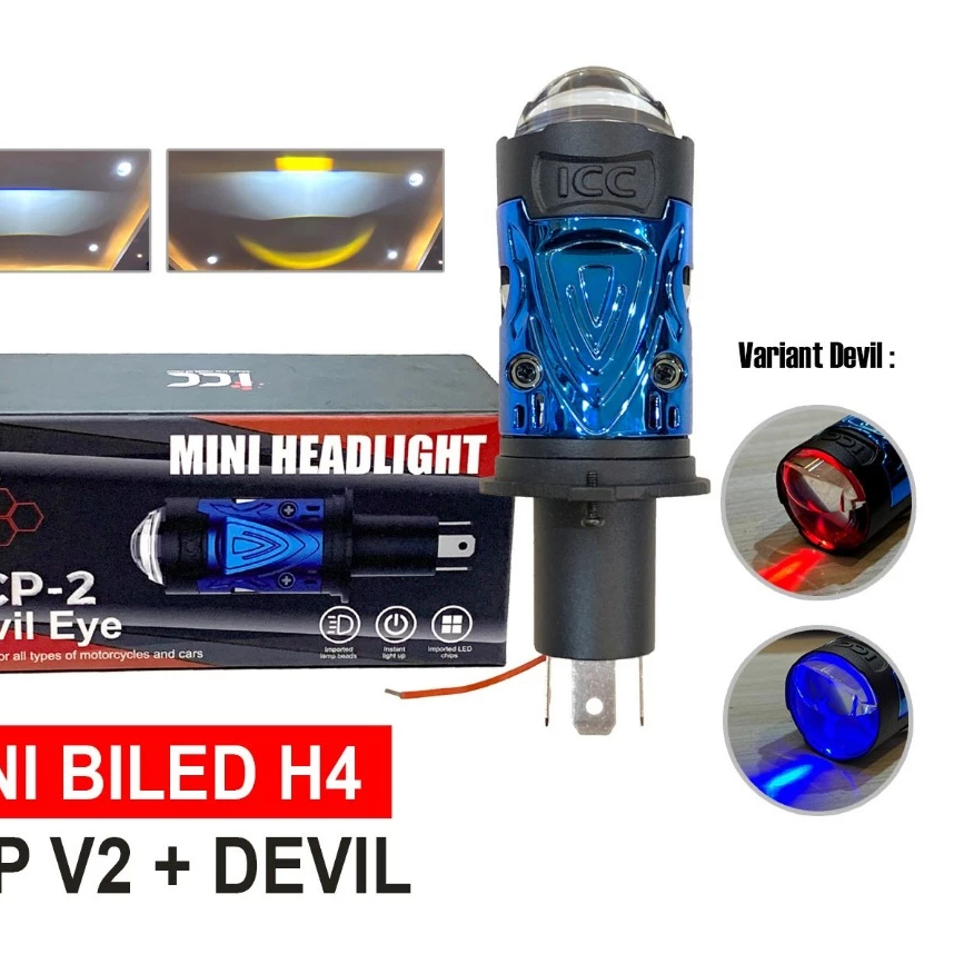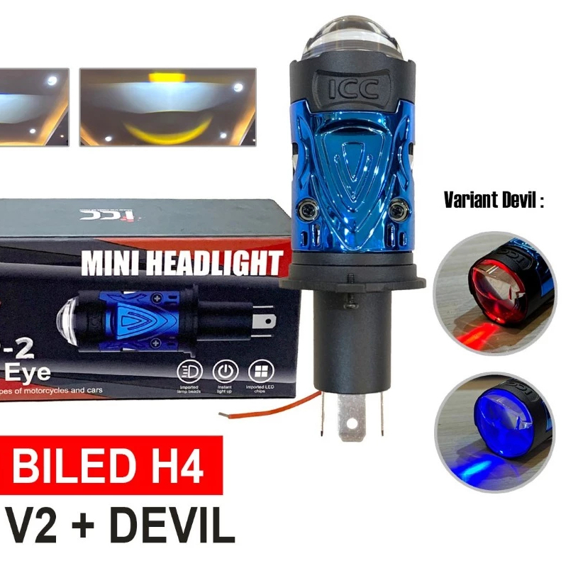 MERAH LED H4 BullAES ICC OCP Pro DEVIL 40 Watt Mini BiLED Laser Headlight Car Motorcycle Red Coolingbiru Flat Cut Off Projector Fan GS-H4 ZE5 H4 LED Headlight Projector Bi LED Projector
