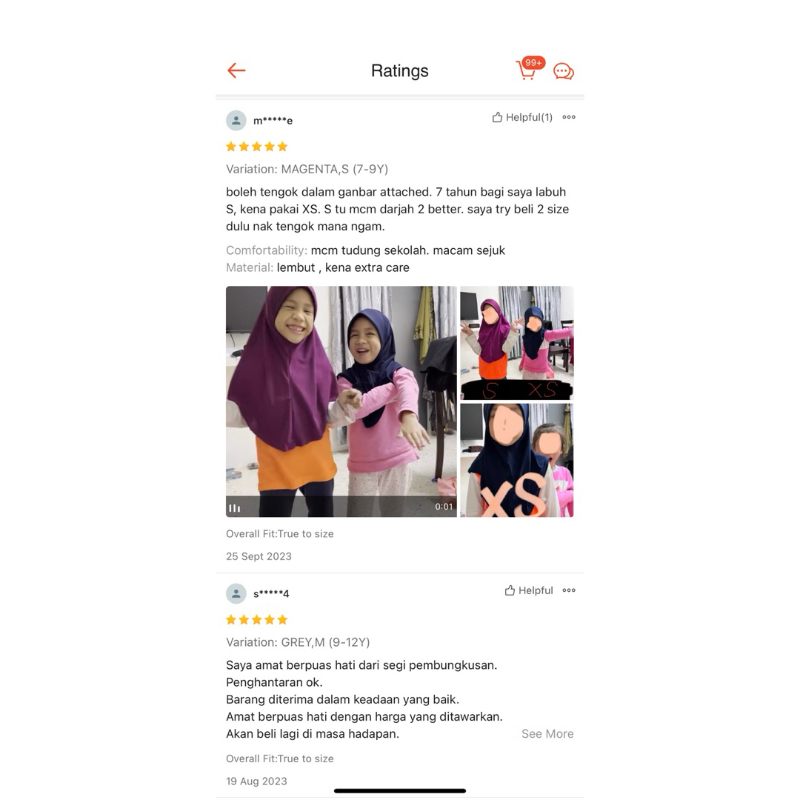 Tudung Sekolah Awning Scuba Instant Sarung Budak Perempuan Kanak-kanak Hijab Murah Bawal Kids Lycra