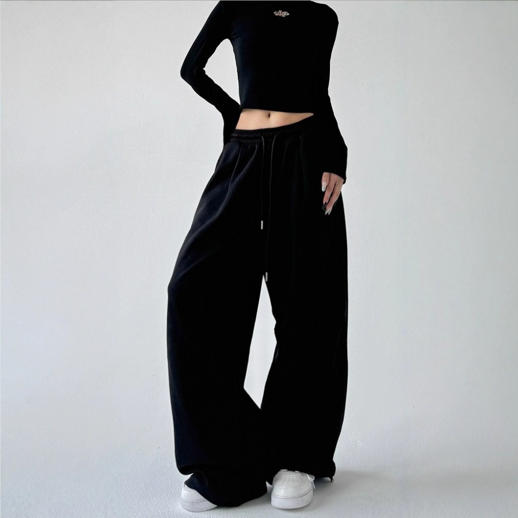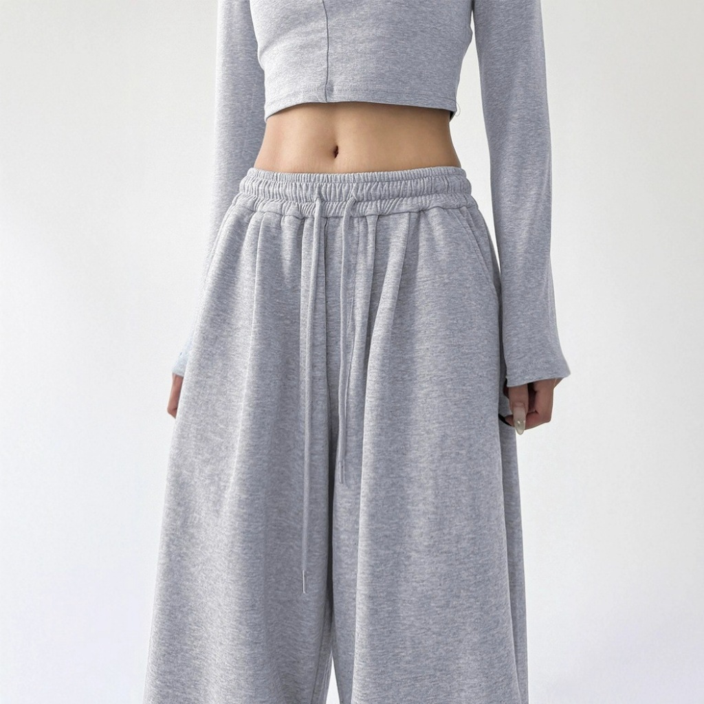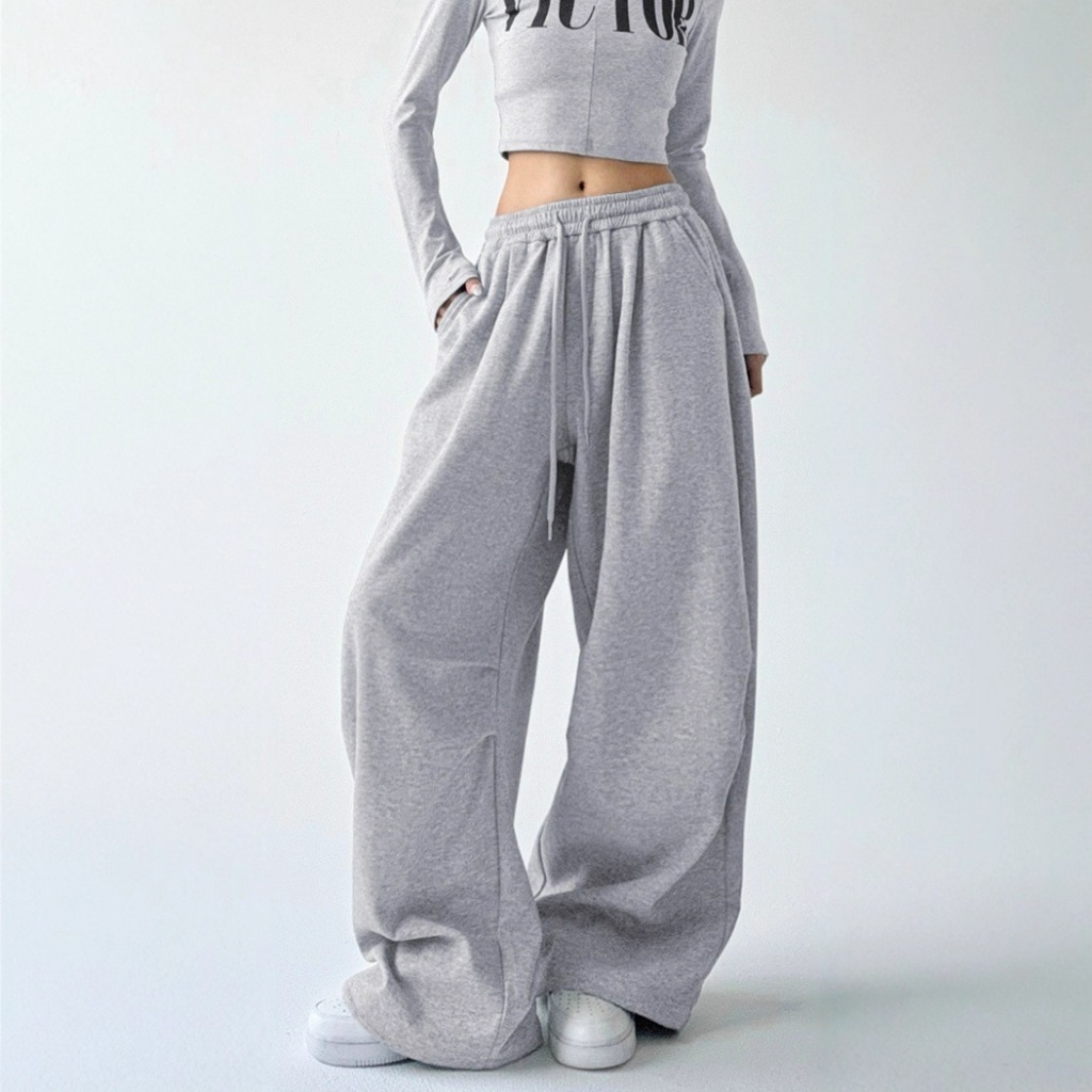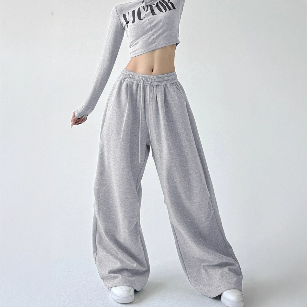 GDTIMA Korean Baggy Pants for Women High Waist Loose Wide Leg Trousers Elastic Casual Gray Pants长裤