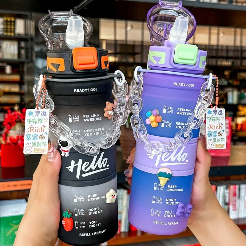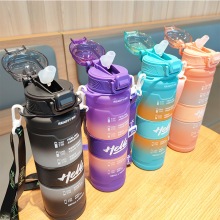 AS Sports water bottle,straw water bottle,portable, cross-shoulder strap 1000ML Time scale
