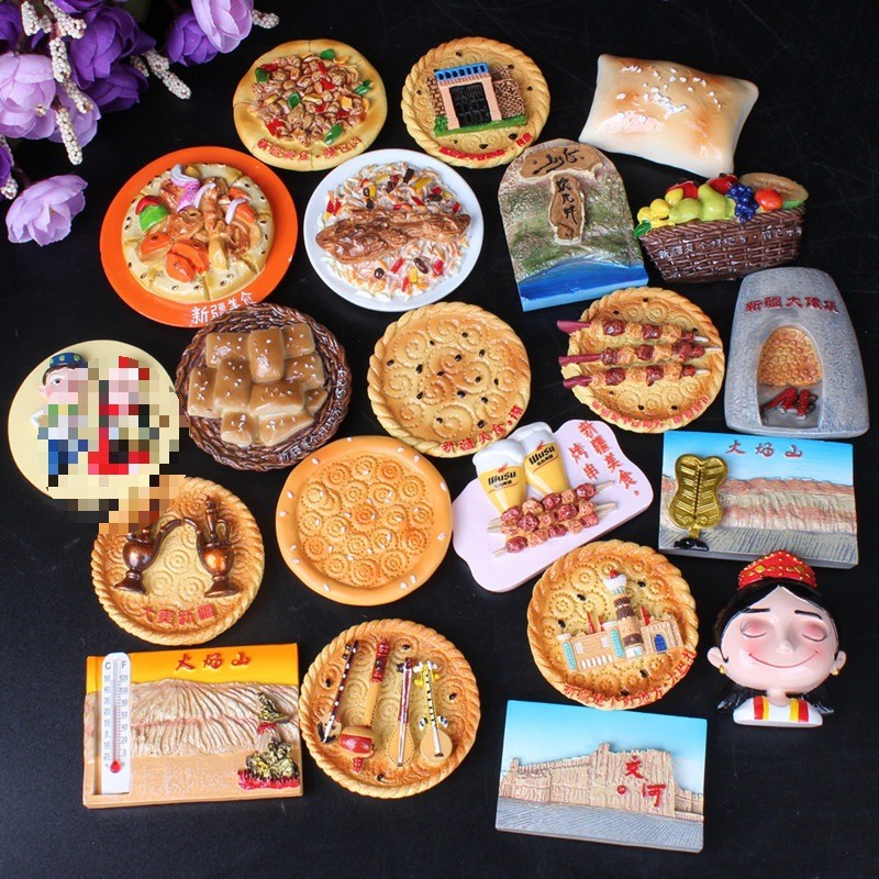 【Shipment within 24 hours】 Magnet Peti Sejuk Xinjiang Pemandangan Gunung Api Muzik Alat Makanan Naan Barbeku Cenderamata Unik Kraf Budaya Etnik