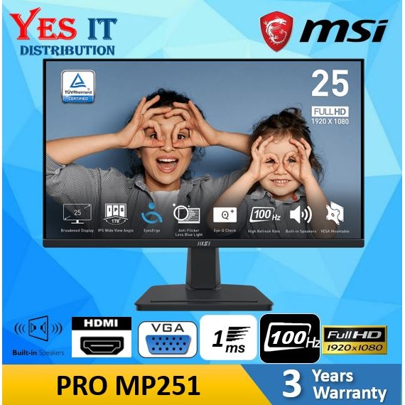 MSI PRO MP251 (24.5", FHD, 100Hz, 1Ms, IPS) Flat Monitor