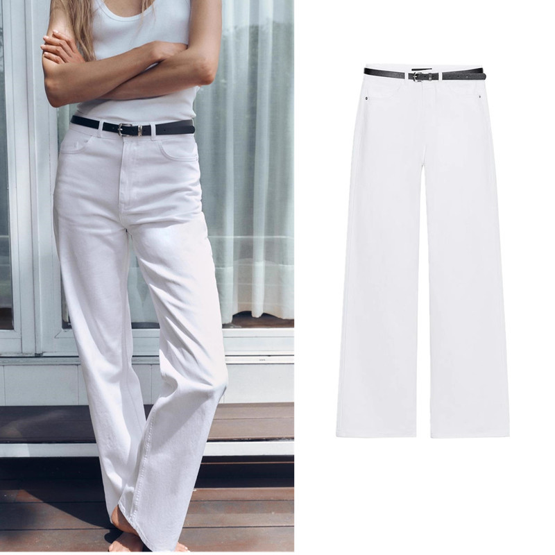 ZA Women's Minimalist Style White High Waist Straight Jeans 1889151