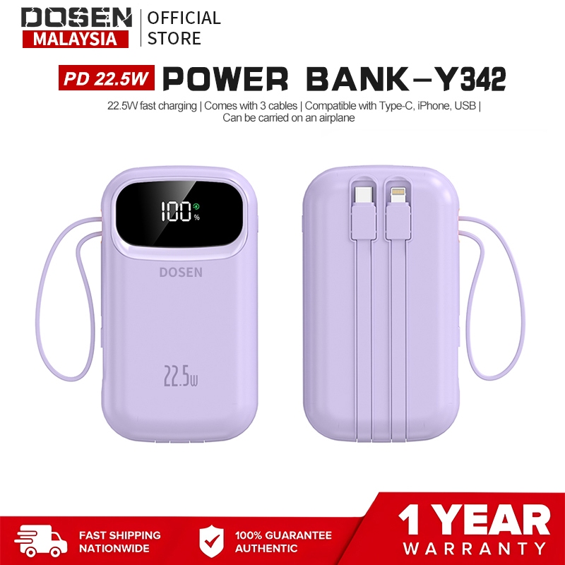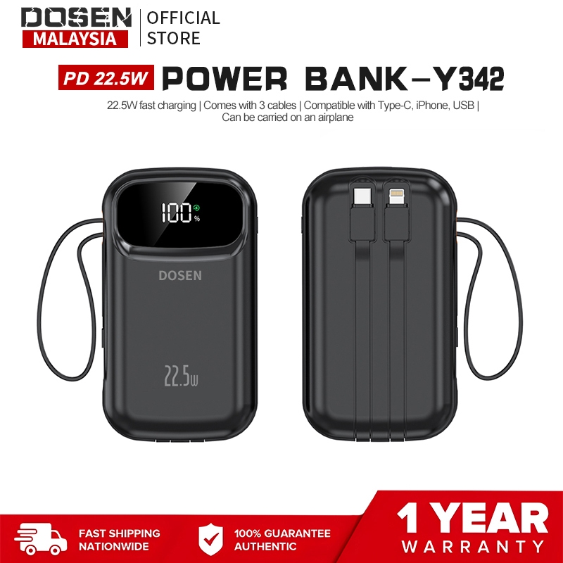 【3C Certified】DOSEN Original Powerbank fast charging Y342 Comes with three wires PD22.5W Portable 20000mAh 25000mAh