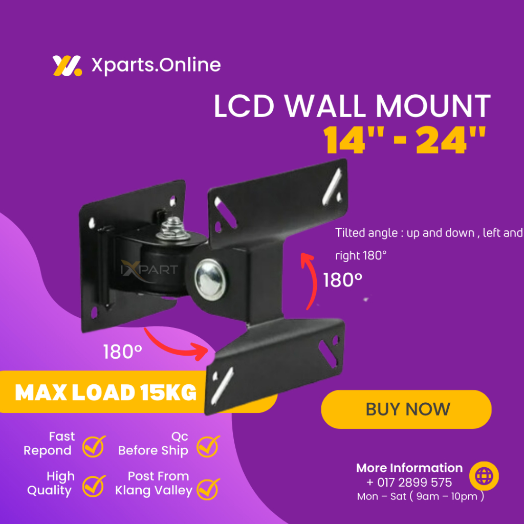 LCD Wall Mount for 14''-24'' Monitors | Adjustable Tilt and Swivel | Space-Saving Monitor Bracket | Easy Installation"