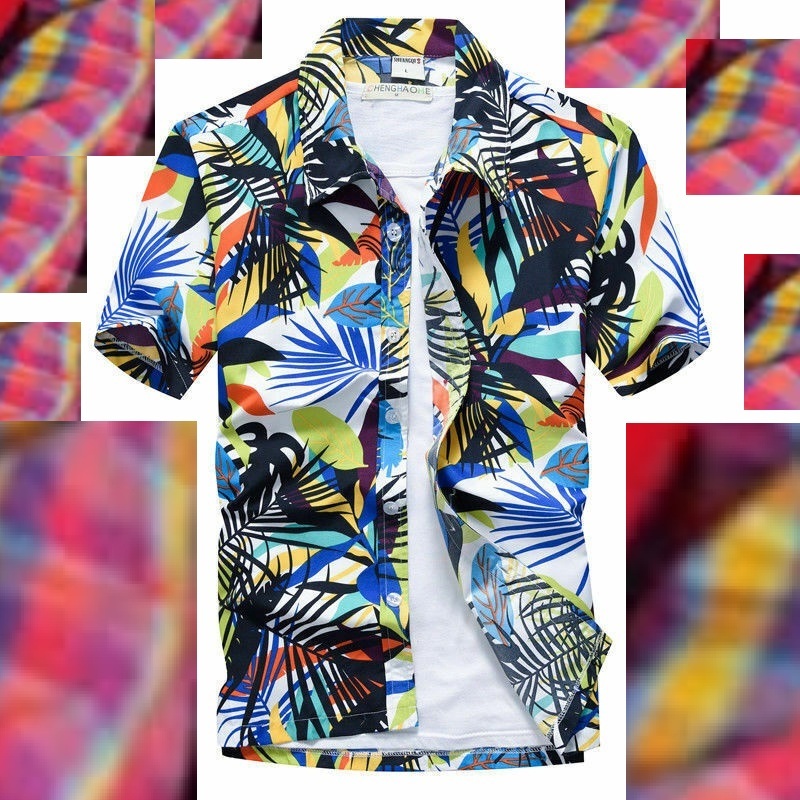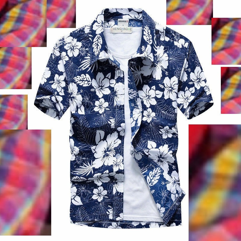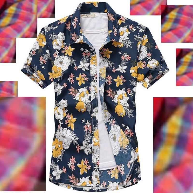kemeja lelaki baju pokok pantai bunga flora men shirt kasual tt113rt