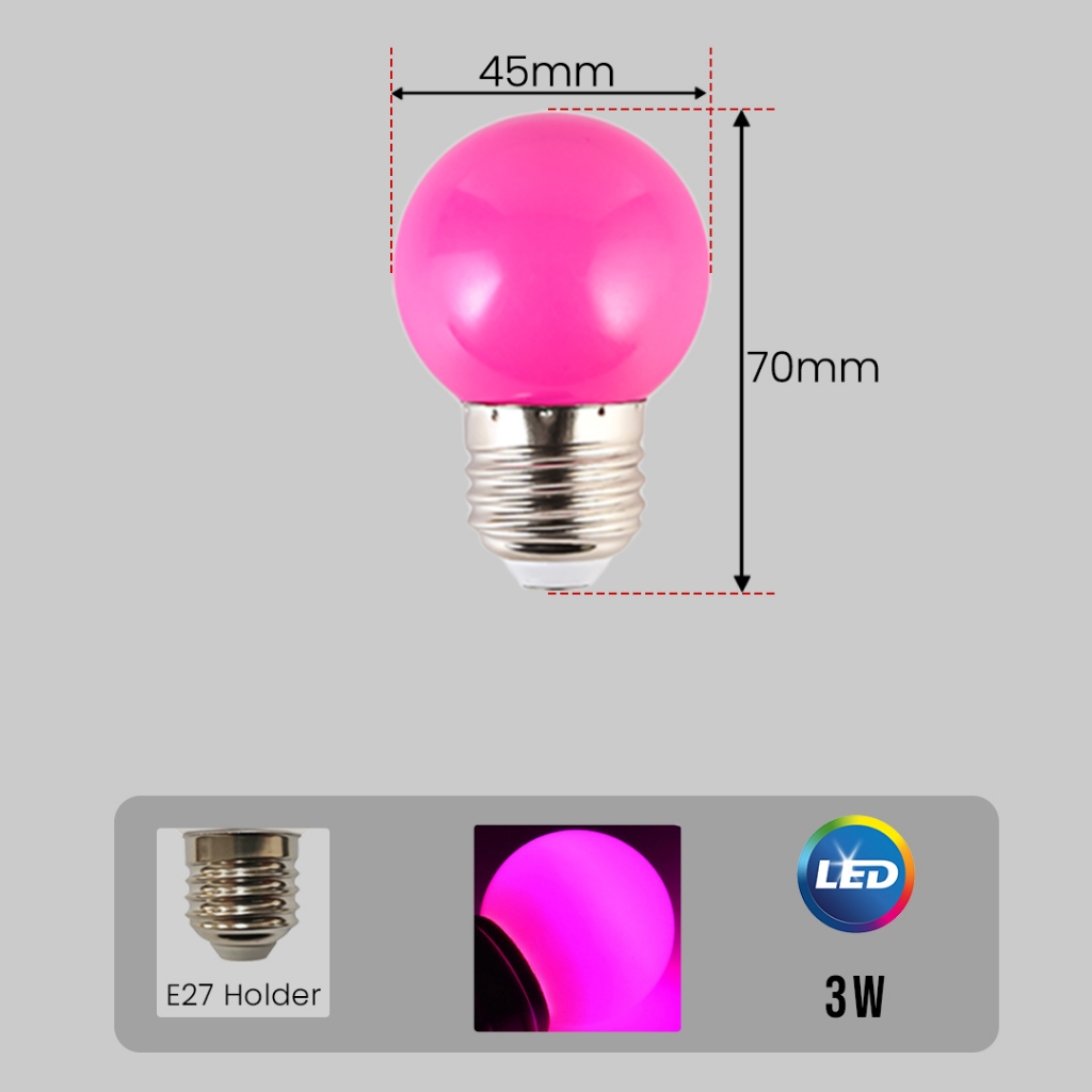 3W Led Colour Bulb Lampu Raya E27 Mentol Lampu Hiasan Hari Raya Warna Warni Led Color Light BULB DECORATION 灯泡 G45