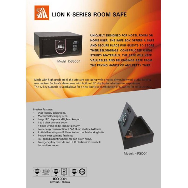 hotel safe top open safe box Lion K-FG001 Hotel room safety box, security safe, safety box top open safe