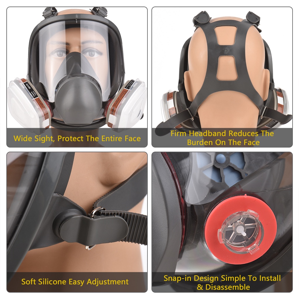 ✨IN STOCK✨16 in 1 6800 gas mask paint gas mask wide field full face mask respirator spray paint silicone mask 6800