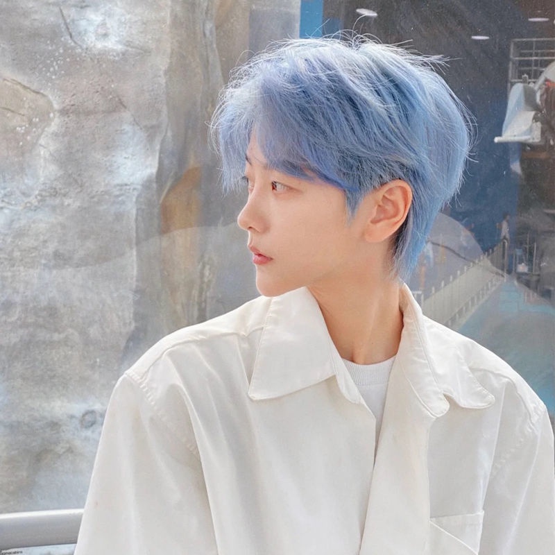 Boys ice blue hair dye powder gray popular show white and bl男生冰蓝色染发剂粉灰色流行显白蓝灰紫色奶奶银灰男士专用染发膏hungalvin