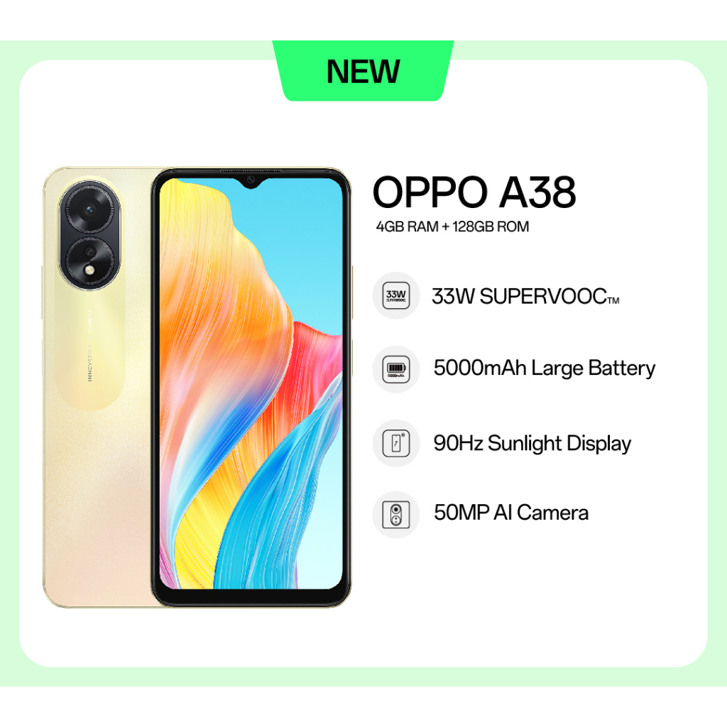 HOT [NEW ARRIVAL] OPPO A38 Smartphone | 4GB RAM + 128GB ROM | 33W SUPERVOOC | 5000mAh Large Battery