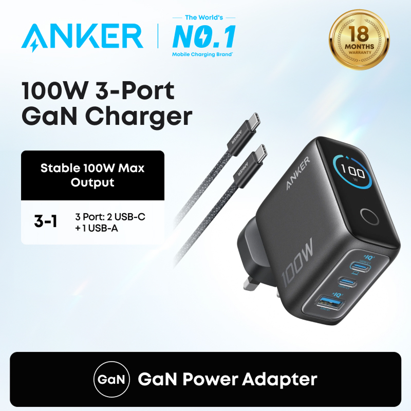 [2026 New] Anker 100W GaN Charger 3-Port Compact Fast Charging Adapter with Smart Display & Touch Control for Phone&Laptop-- B121B