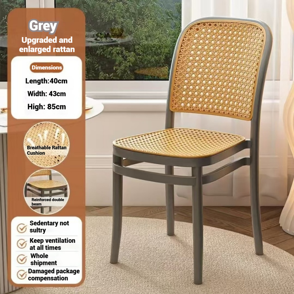 【 ⚡In Stock⚡】Rattan Chair Dining Chair Kerusi Plastik Kerusi Makan Balcony Chair Garden Chair Backrest Chair 藤椅子