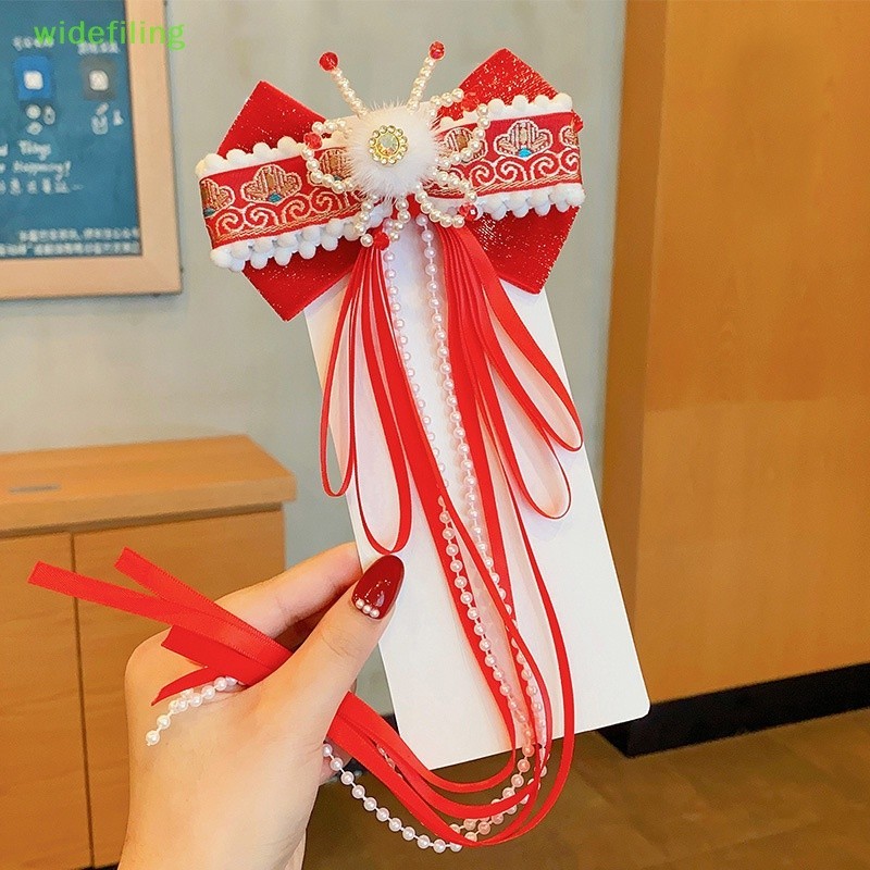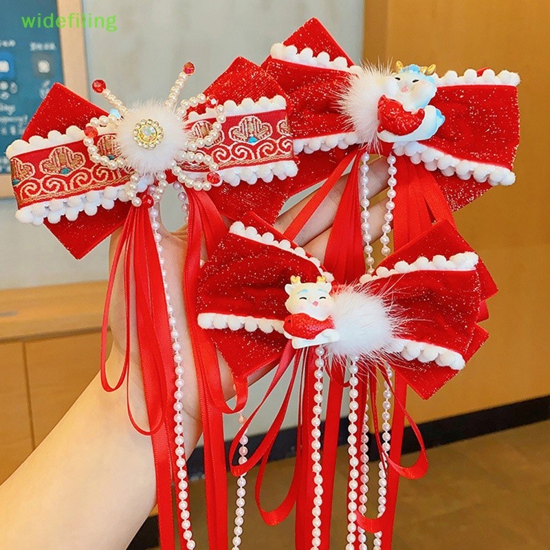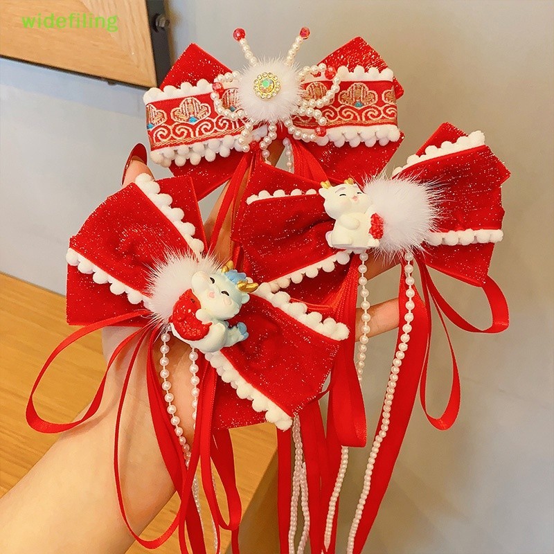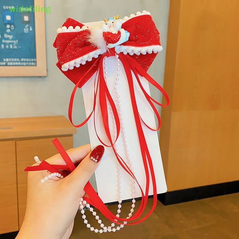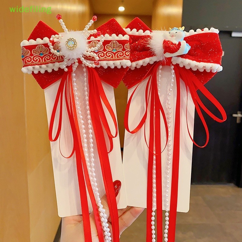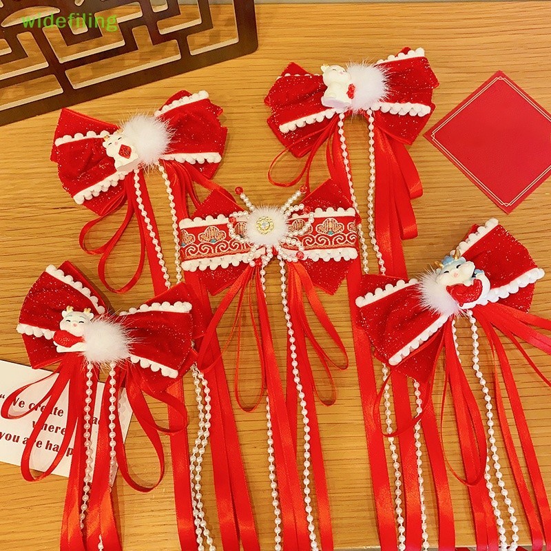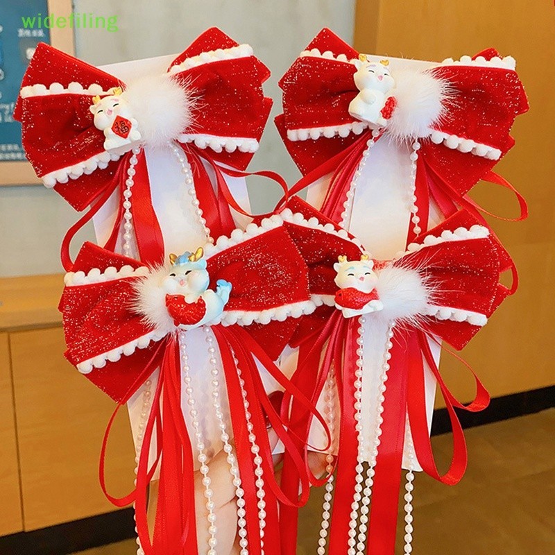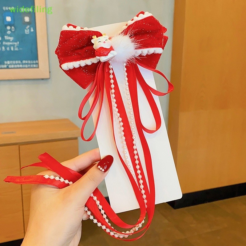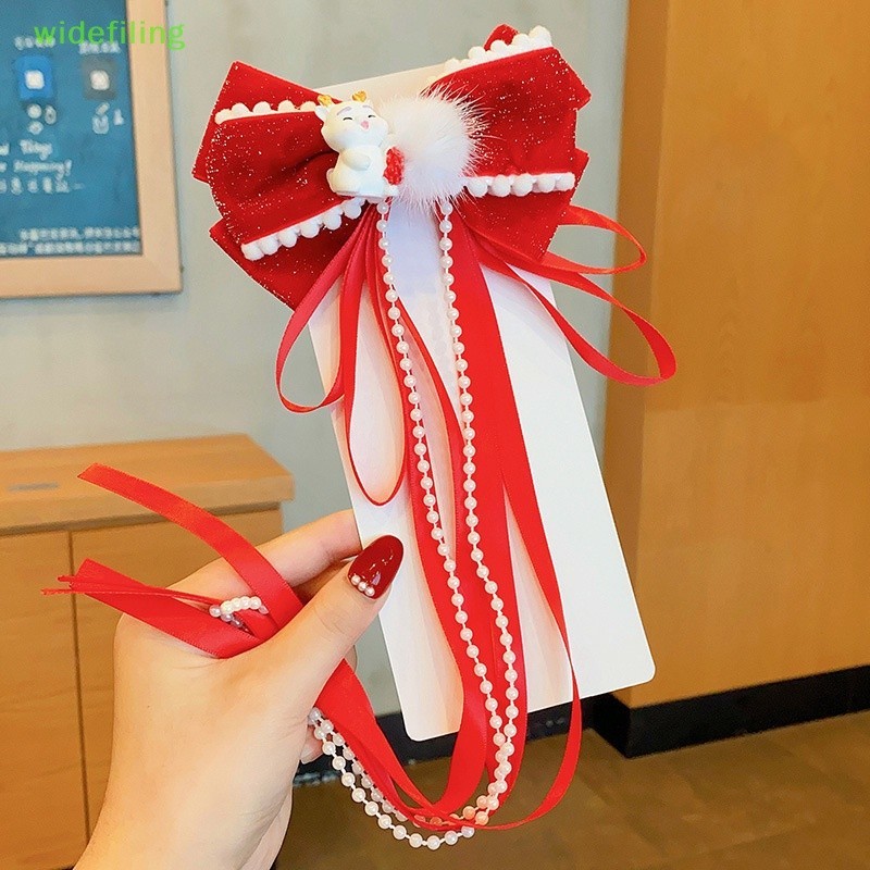 BL Sweet Red Velvet Bow Hairpin Long Ribbons Bows Hair Clips Cute Girls Barrettes For 2024 Chinese New Year Head